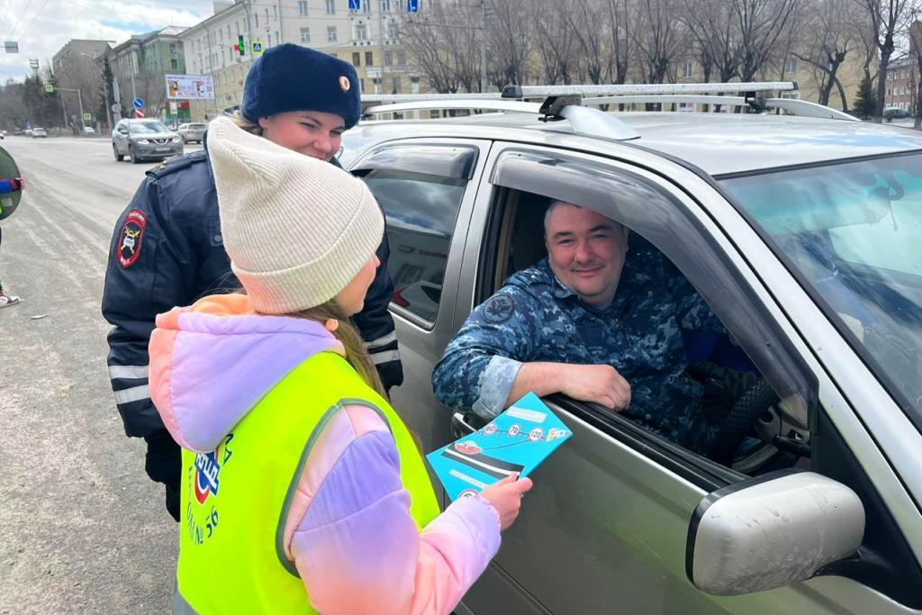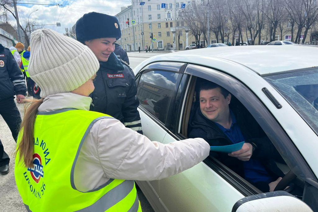В День космонавтики сотрудники Госавтоинспекции и ЮИДовцы напомнили водителям, что не стоит «летать» по дорогам