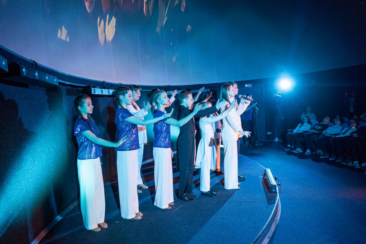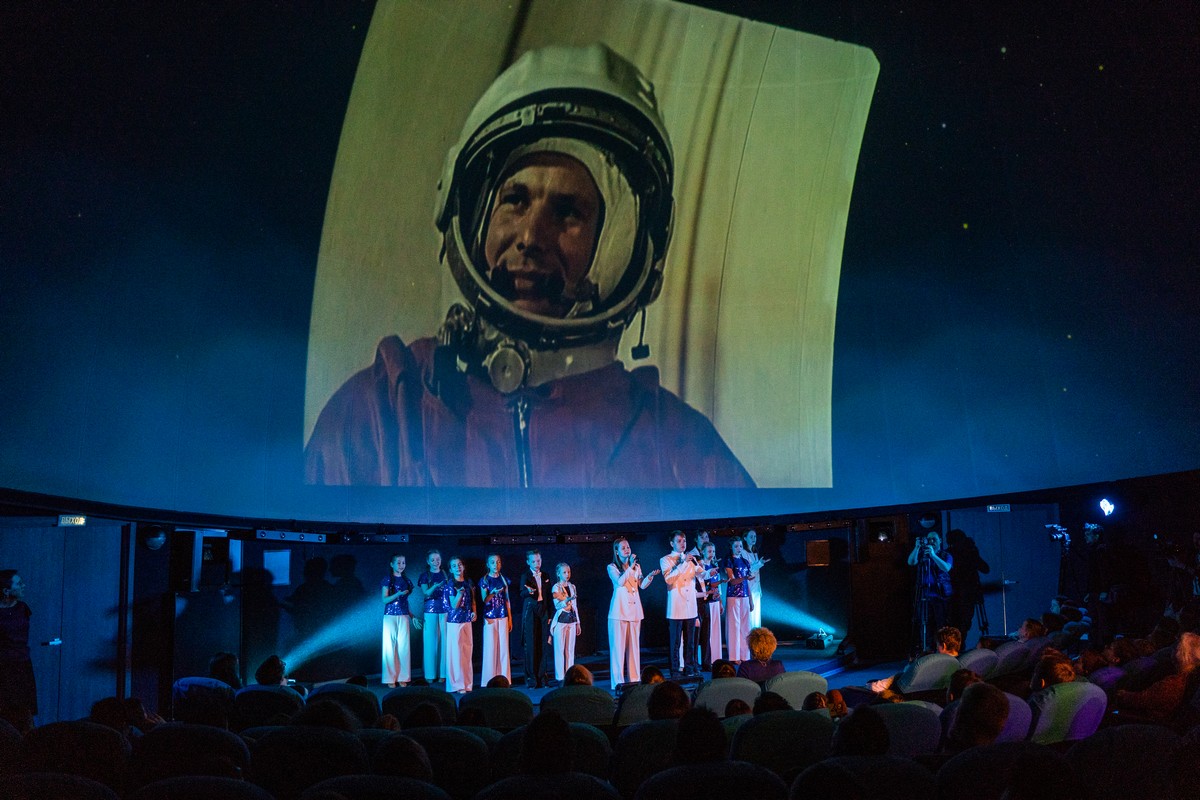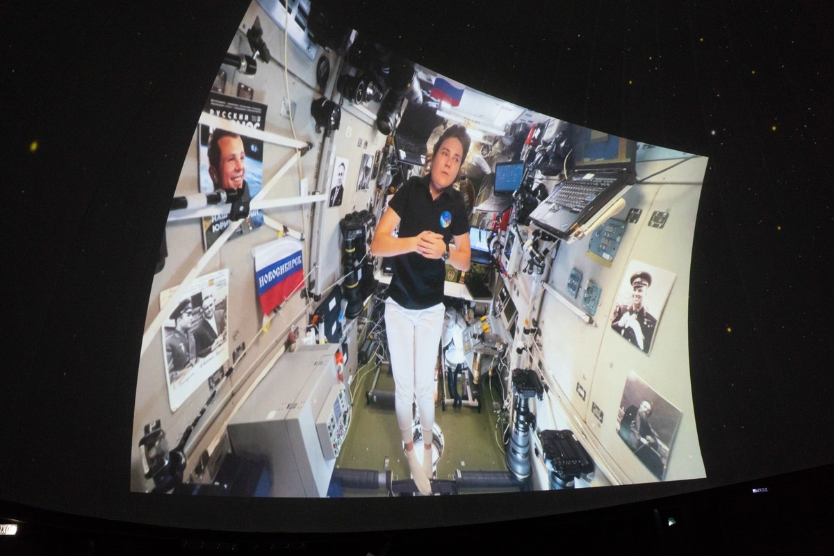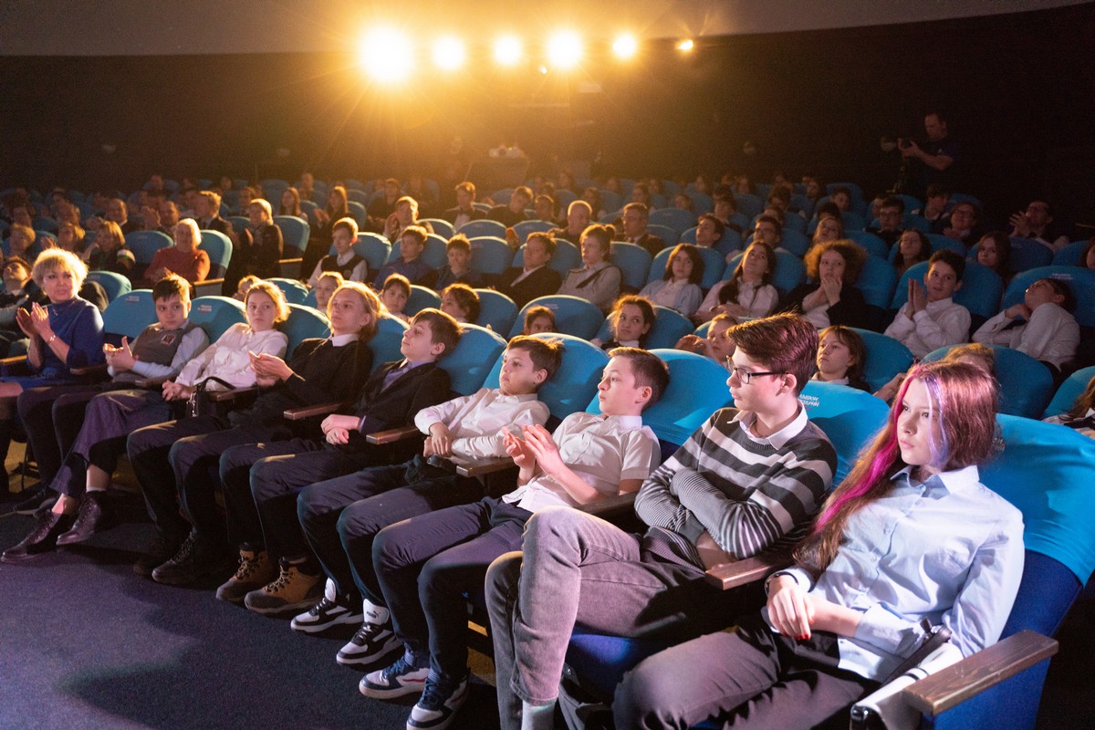 В завершение урока подарком всем присутствующим стал показ премьерного полнокупольного фильма «Космическая история России».