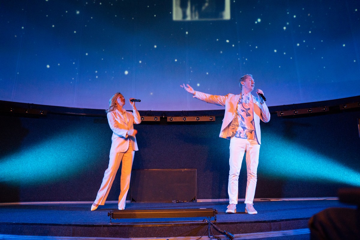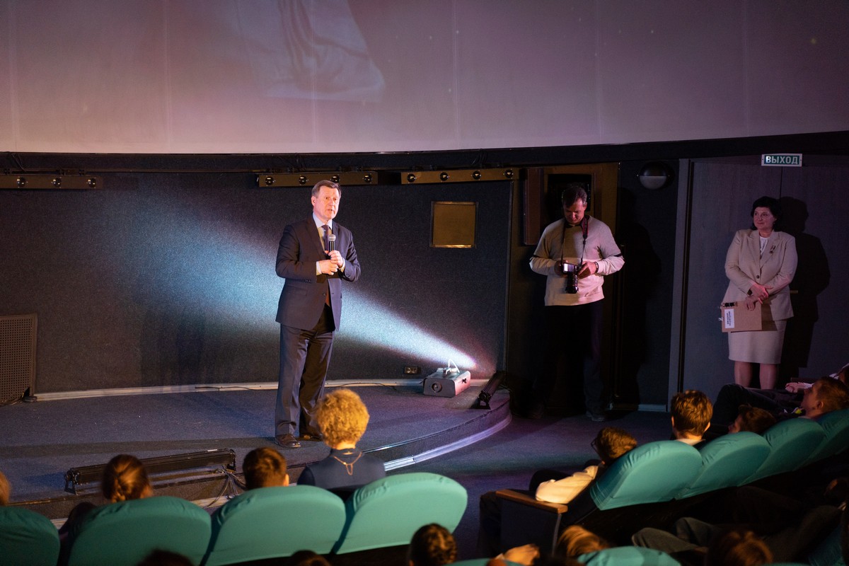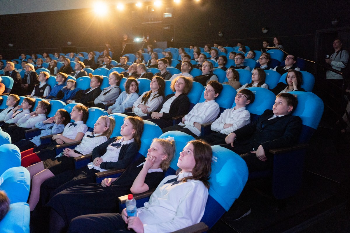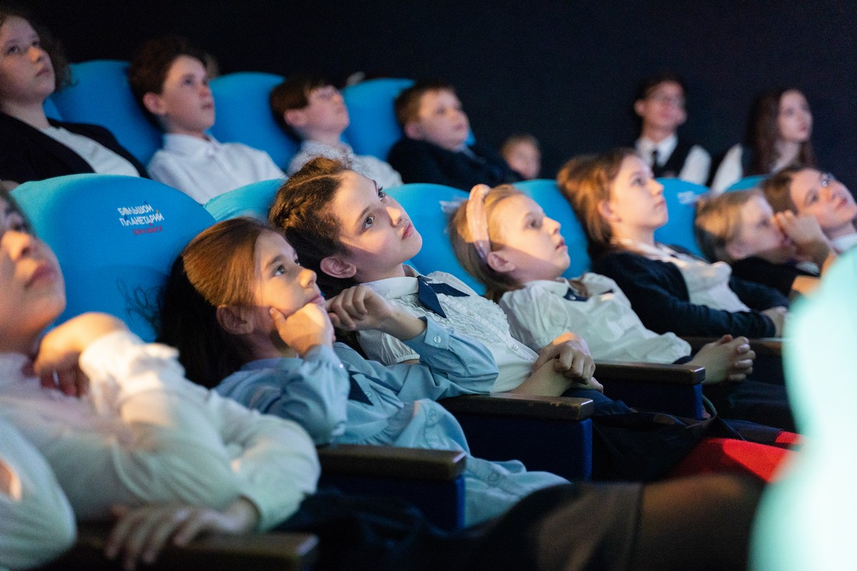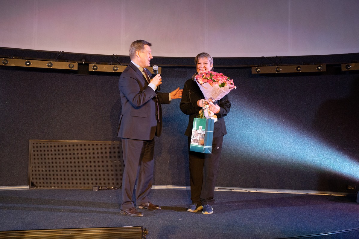 В завершение урока подарком всем присутствующим стал показ премьерного полнокупольного фильма «Космическая история России».