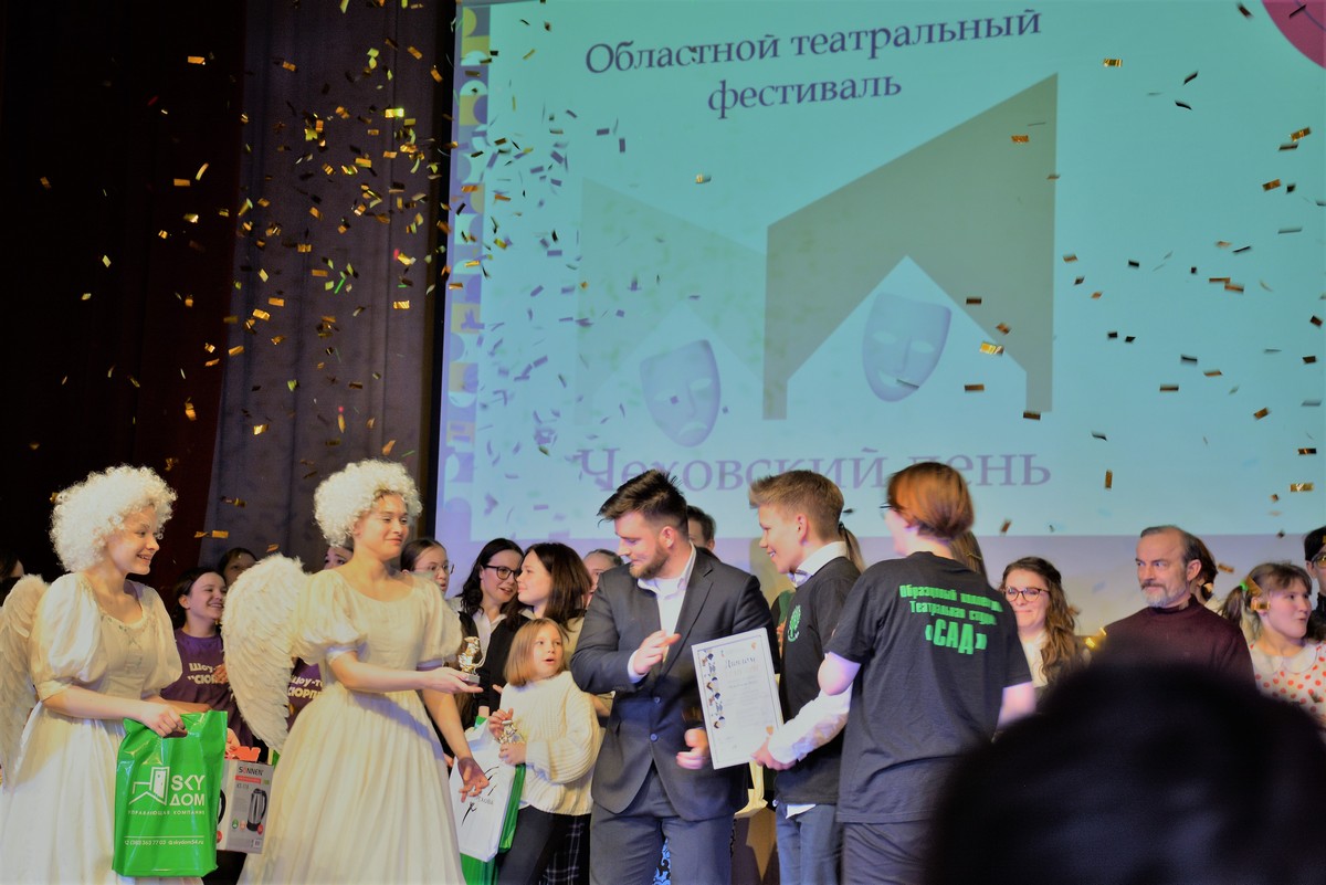 В Молодежном центре им. А. П. Чехова в рамках проекта «Чеховский день» прошел 4 областной театральный фестиваль, на котором состоялось торжественное награждение любительских театральных коллективов (ГРАН-ПРИ, лауреаты, дипломанты, номинации, за участие).