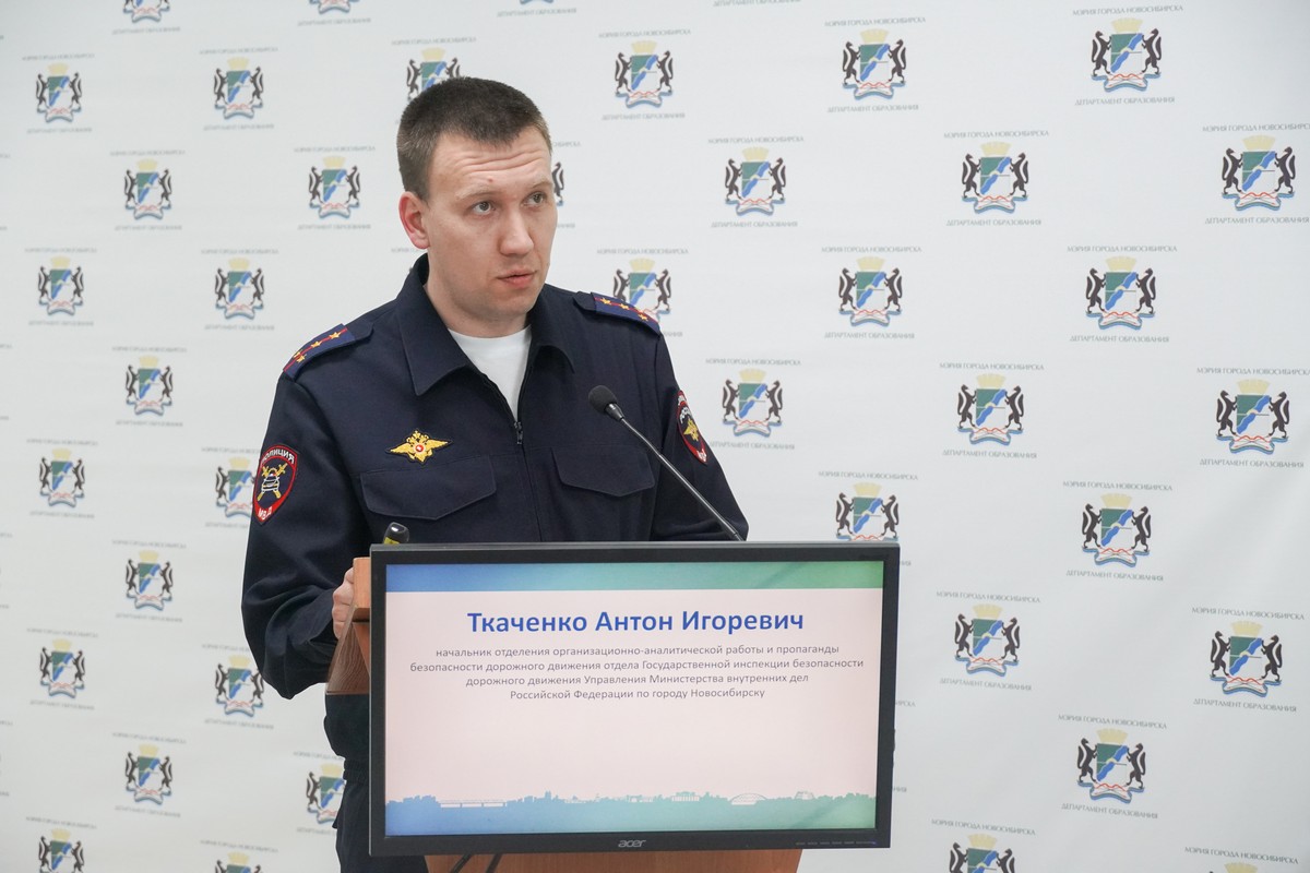 С докладом «Средства индивидуальной мобильности и велосипеды – профилактика дорожно-транспортного травматизма в летний период» выступил Антон Игоревич Ткаченко, начальник отделения организационно-аналитической работы и пропаганды безопасности дорожного движения отдела ГИБДД УМВД России по городу Новосибирску, капитан полиции.