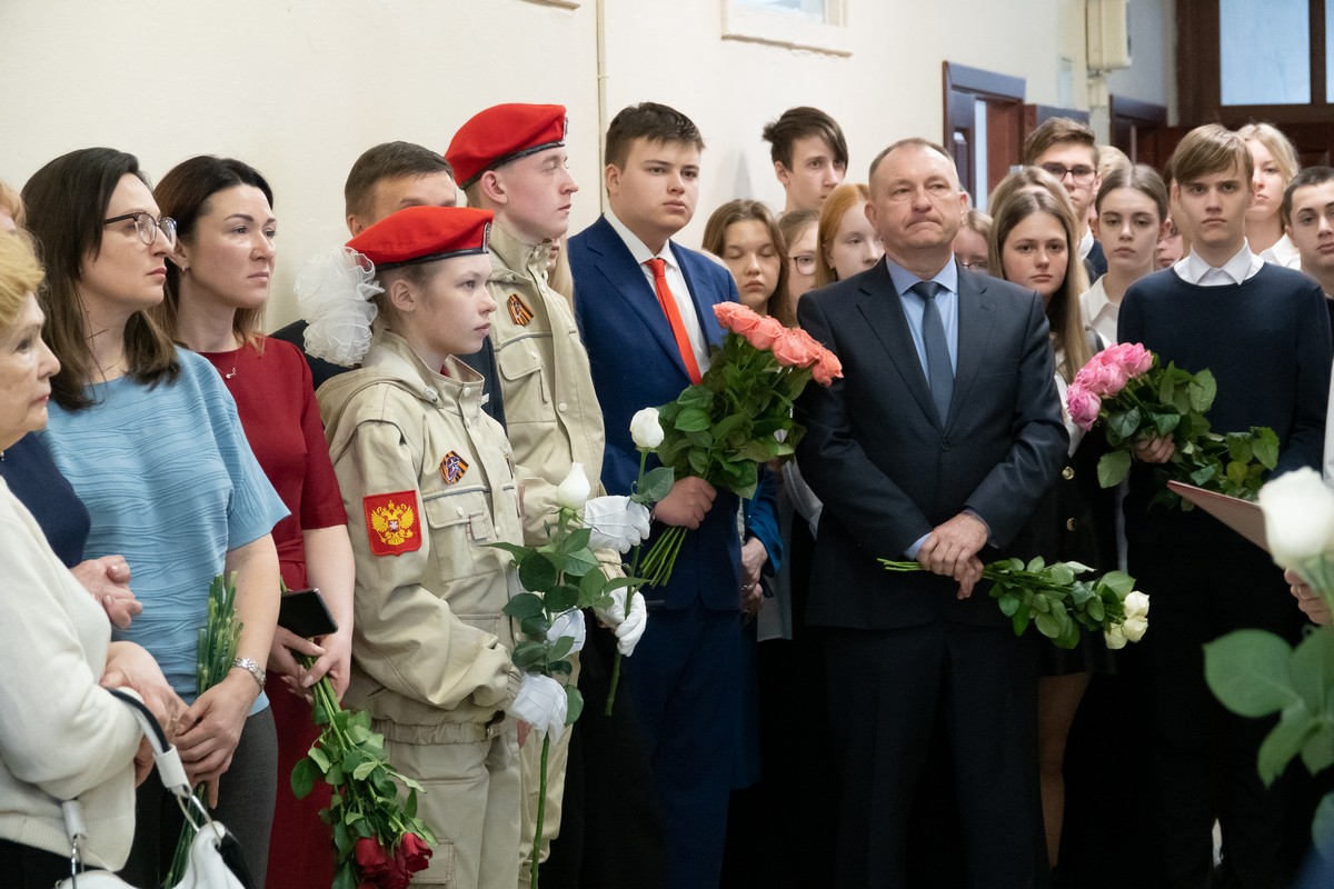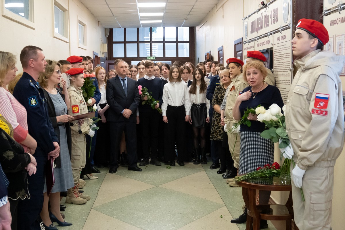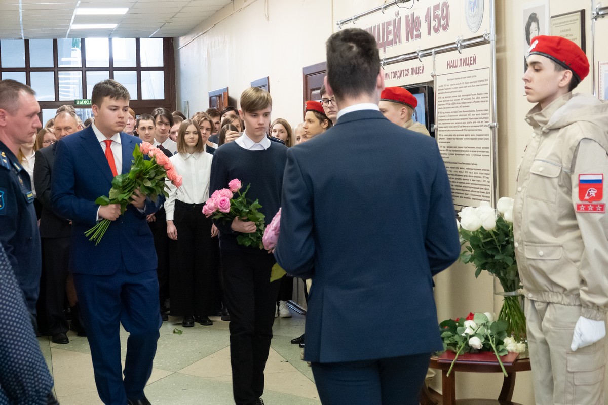 Право открыть Памятный знак было предоставлено Людмиле Ивановне Пуховой, коллеге Галины Ивановны, Почетному работнику воспитания и просвещения Российской Федерации, и Андрею Ивановичу Николаенко, выпускнику лицея, а сегодня учителю истории и обществознания лицея № 159, победителю федерального конкурса «Флагманы образования».