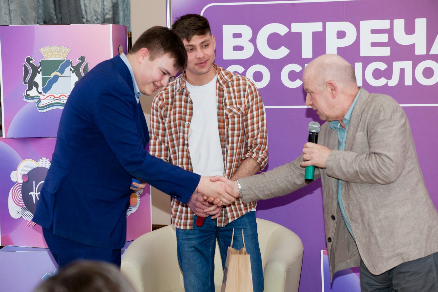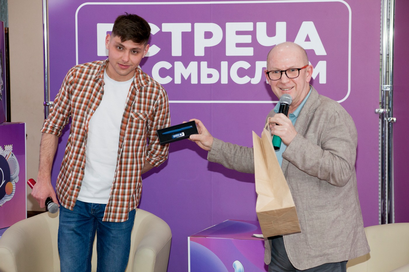 В завершение встречи школьники приняли участие в розыгрыше специальных призов проекта «Встреча со смыслом». Всем активным участникам диалога Илья Владимирович также вручил памятные подарки.