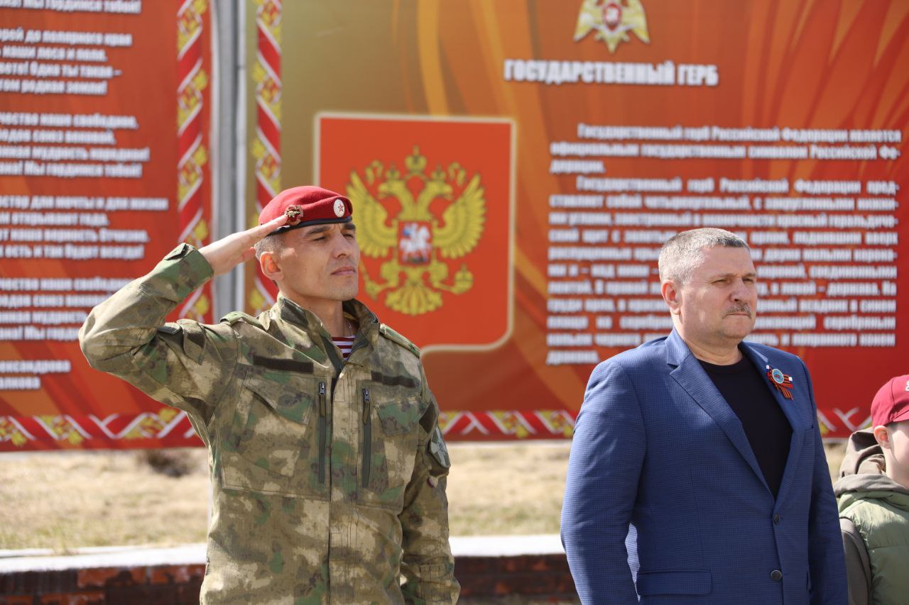 Мероприятие началось с торжественного построения, на котором почтили память воинов, погибших защищая Отечество, возложили гирлянду и цветы к памятнику. Также прошло шествие «Бессмертного полка». В каждой части программы непосредственными участниками были сами ребята, что позволило им почувствовать себя в роли военнослужащего. Большим подарком были показательные выступления подразделения специального назначения.
