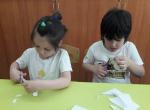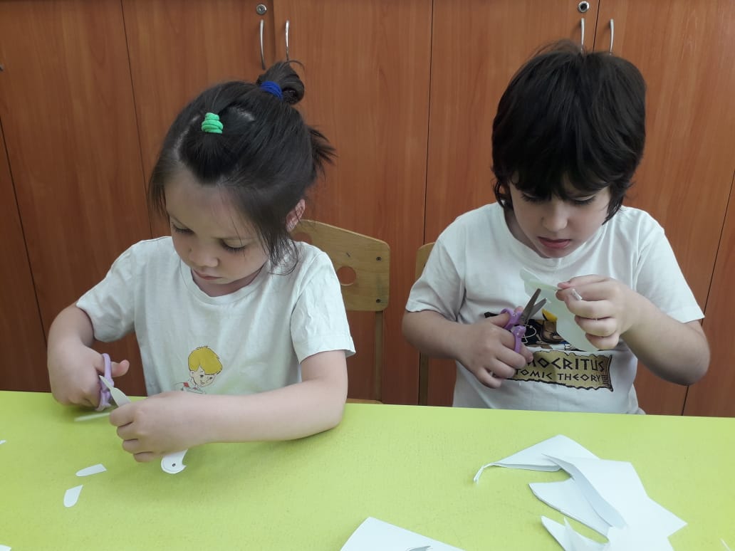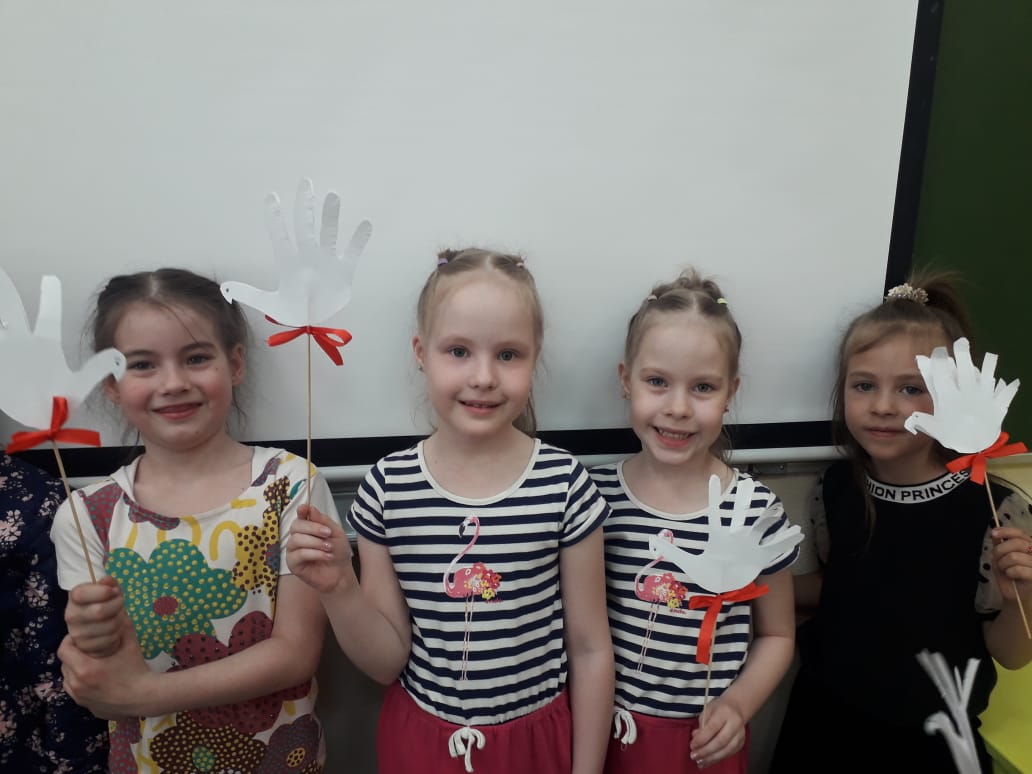 На занятии ИЗО ребята выполнили голубей мира из бумаги.