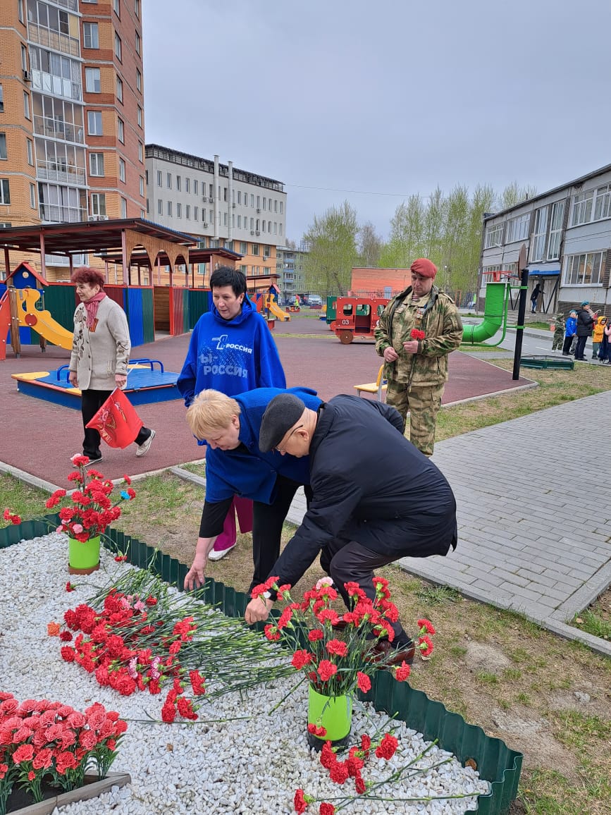 Под звуки метронома была объявлена минута молчания. Потомки героев Великой Отечественной войны возложили цветы на Аллею Памяти.