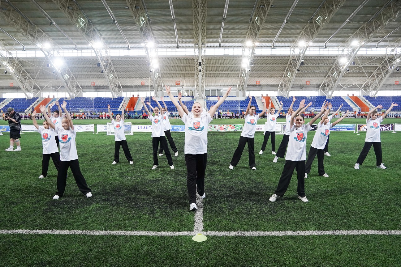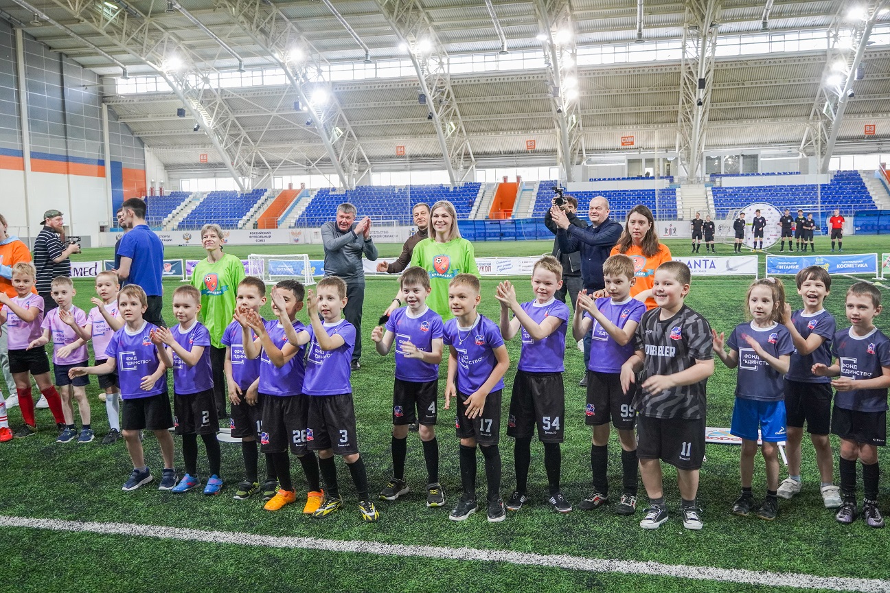Вместе с маленькими футболистами почетные гости провели разминку. После чего начались динамичные и увлекательные соревнования по мини-футболу.