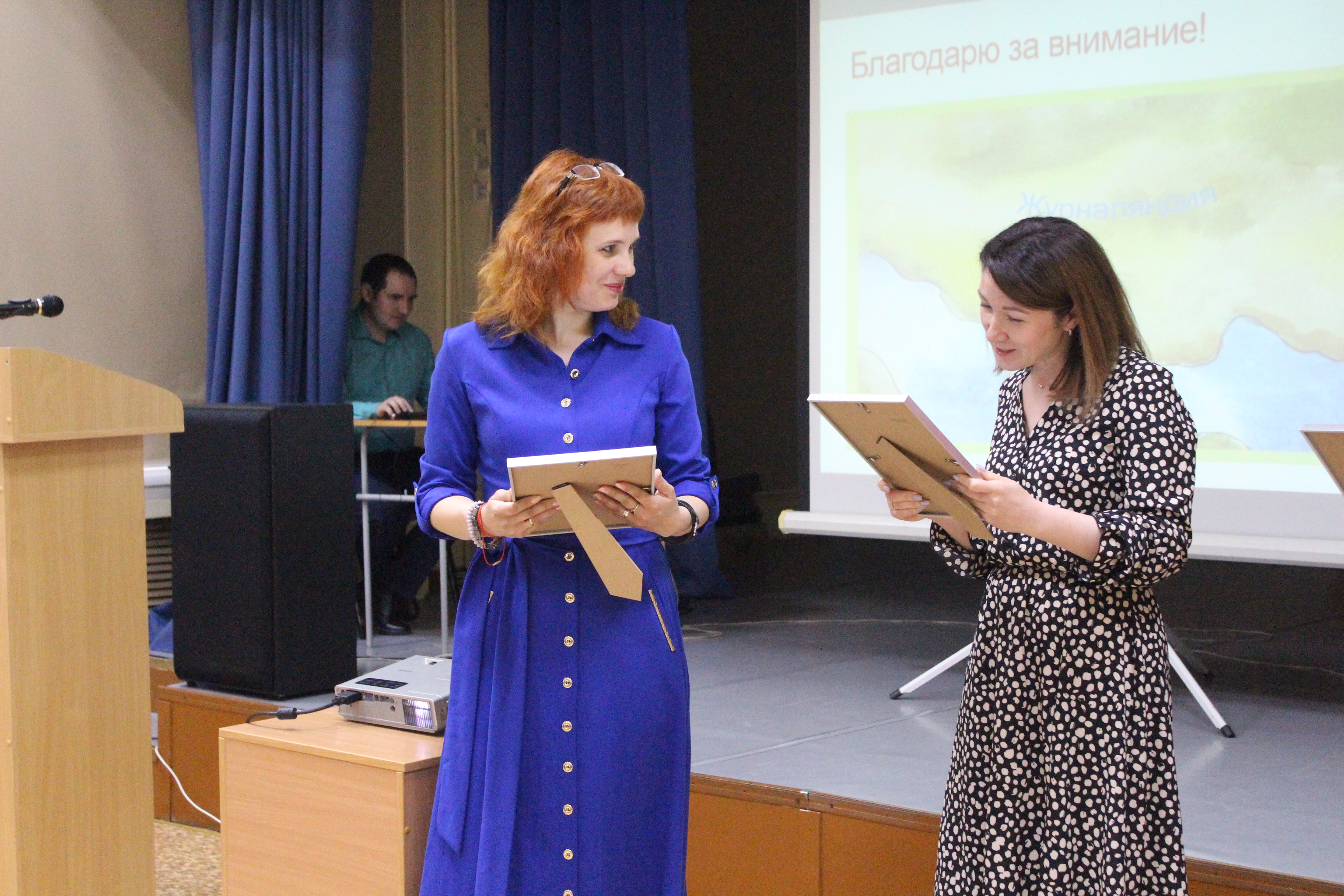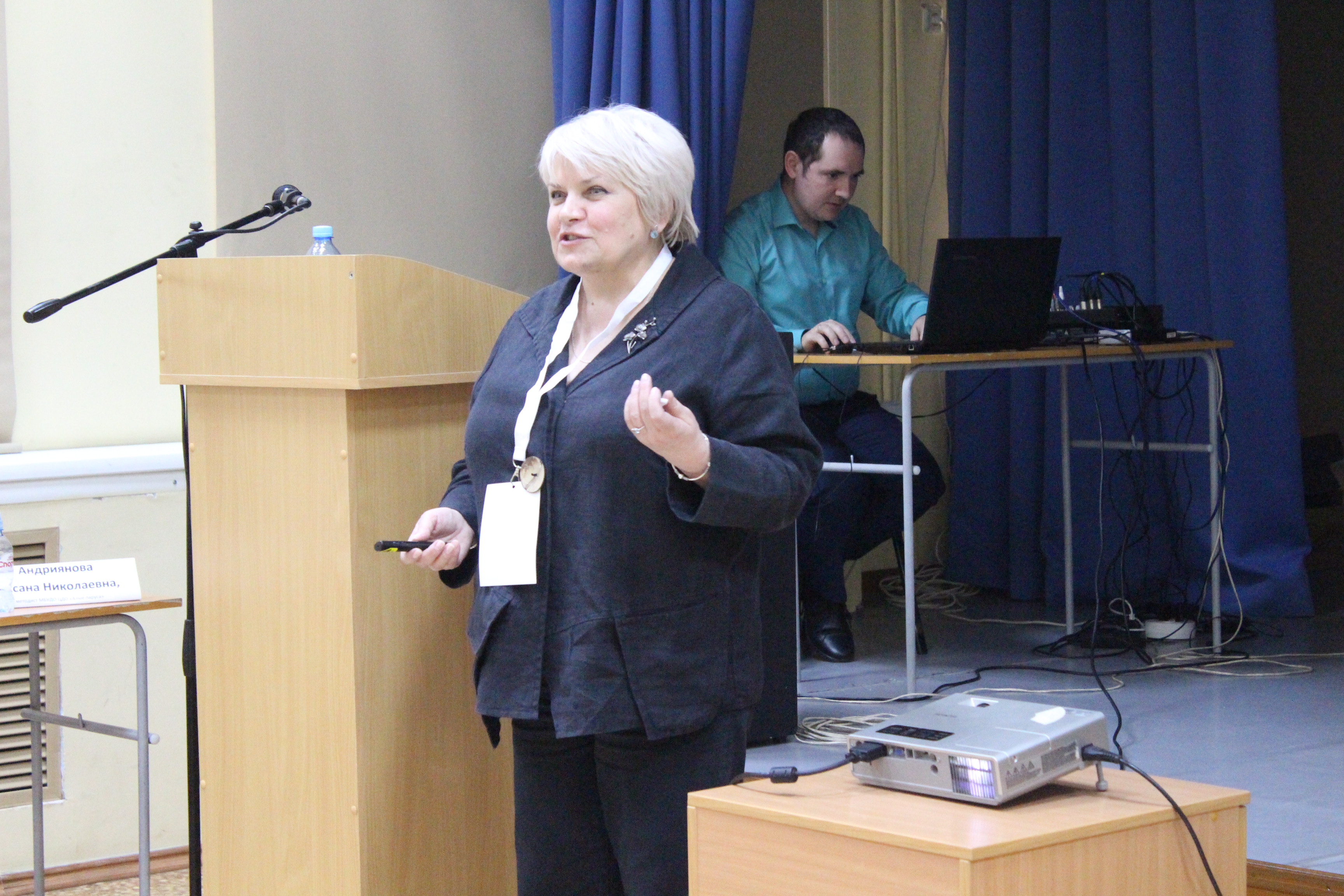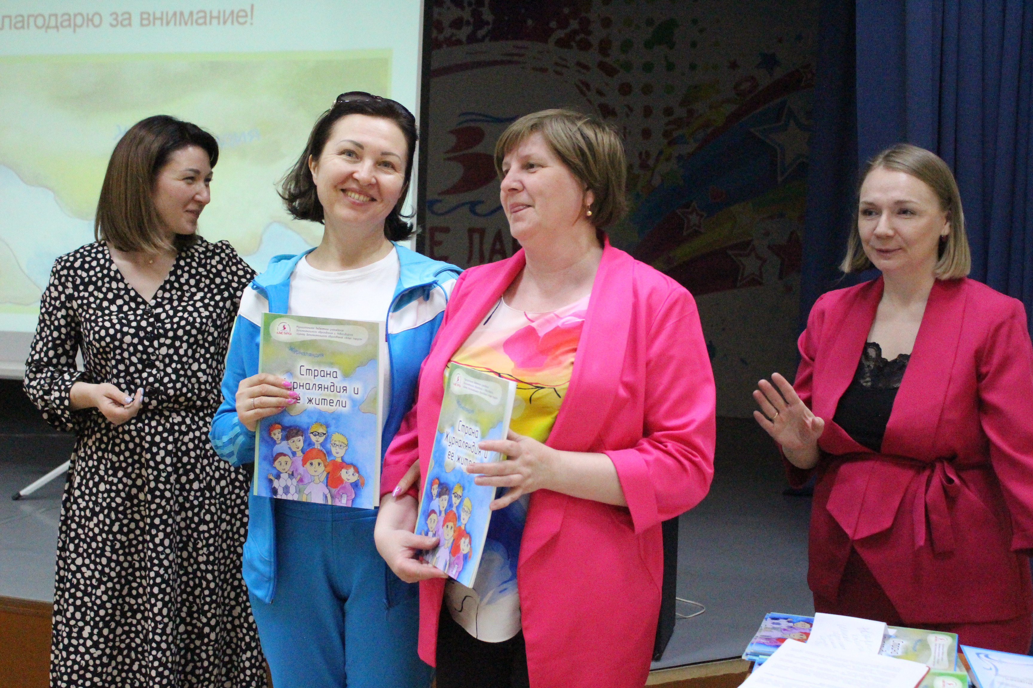Открыла диалоговую площадку презентация профориентационного проекта «Страна Журналяндия» для дошкольников как форма гражданско-патриотического воспитания на основе вовлечения подростков в создание социально-значимых продуктов. Презентацию провела педагог дополнительного образования ЦДО «Алые паруса» Ольга Андреевна Дегтярева совместно с учащимися Школы юного журналиста – Ириной Звягиной и Кириллом Кудренко. В завершение презентации проекта депутат Совета депутатов города Новосибирска Екатерина Викторовна Шалимова вручила ребятам творческих объединений Школа юного журналиста и «Город мастеров» (Студия «Кадр»), принимавшим участие в работе над проектом, благодарственные письма и авторские экземпляры первого тиража книги «Страна Журналяндия». Всем ребятам было приятно получить признание столь значимой аудитории педагогических и административных работников образовательных организаций Новосибирска, Томска, Братска.