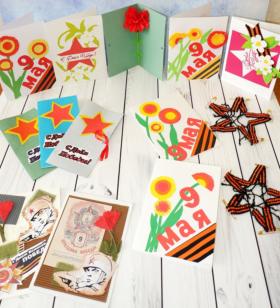 Ребята под руководством своих талантливых педагогов с особым старанием изготовили своими руками более 60 сувениров – красивые открытки, сувениры для ветеранов и более 30 георгиевских брошей, вложив в них тёплое чувство благодарности за счастливое детство и мирное небо над головой.