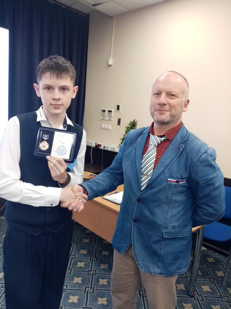 Зоткин Николай представил «Видеоурок по основам программирования на языке Pascal» и занял 1 место. Грамоту и отличительный знак «За победу во Всероссийском форуме «Мы Гордость Родины» он получил из рук доктора технических наук, профессора Государственного университета «Дубна», академика Международной академии информатизации Блюмина Аркадия Михайловича.