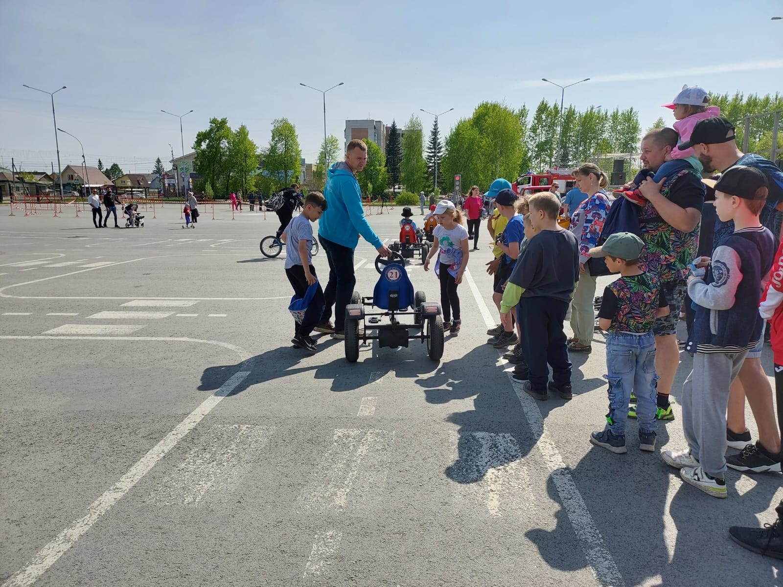 Мероприятие началось с показательного выступления спасателей пожарной части, где собрались все участники праздника. После выступления ребята разошлись по интерактивным станциям. На станции Детского автогородка каждый мог пройти тестирование по Правилам дорожного движения, примерить на себя роль водителя и прокатиться на веломобиле.