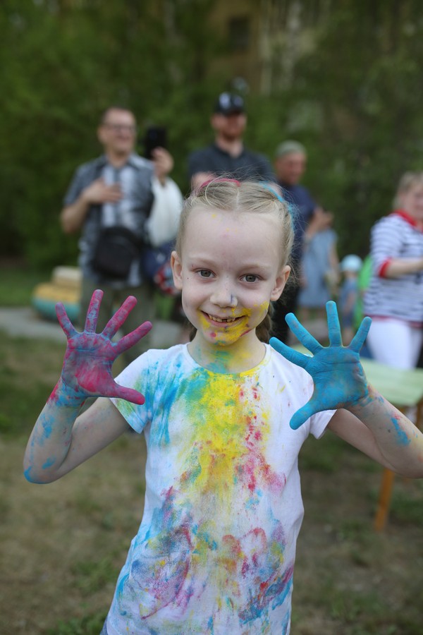 1 июня более пятидесяти стран всего мира, и Россия в том числе, празднуют Международный день защиты детей. Для дошколят – это самый веселый и желанный праздник! Ребята ждут его с нетерпением, потому что знают, он будет полон сюрпризов. Так и случилось в этом году: педагоги и родители подготовили необычайное цветовое шоу. Вместе со сказочными героями маленькие «Солнышки» и «Зайчики» радостно делали зарядку, пели песни, танцевали, отгадывали загадки. Но самым неожиданным для детей стал салют из красок, который ребята сами запустили так высоко, насколько хватило их детских ручек. В каждом кулачке была зажата не просто цветная красочка, а детская мечта «сделать мир разноцветным». Педагоги помогли маленьким мечтателям осуществить это волшебство. Детской радости не было предела: ребята визжали от восторга, их глаза светились счастьем! Педагоги и родители вместе с детьми окунулись в мир детства и волшебства.