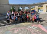 В этот прекрасный день мы начали праздник с традиционного фестиваля рисунка на асфальте, тематикой были выбраны любимые достопримечательности города Новосибирска. И, конечно же, серый асфальт перед Домом творчества очень скоро озарился самыми яркими красками и прекрасными рисунками, над которыми трудились девять команд-участников.