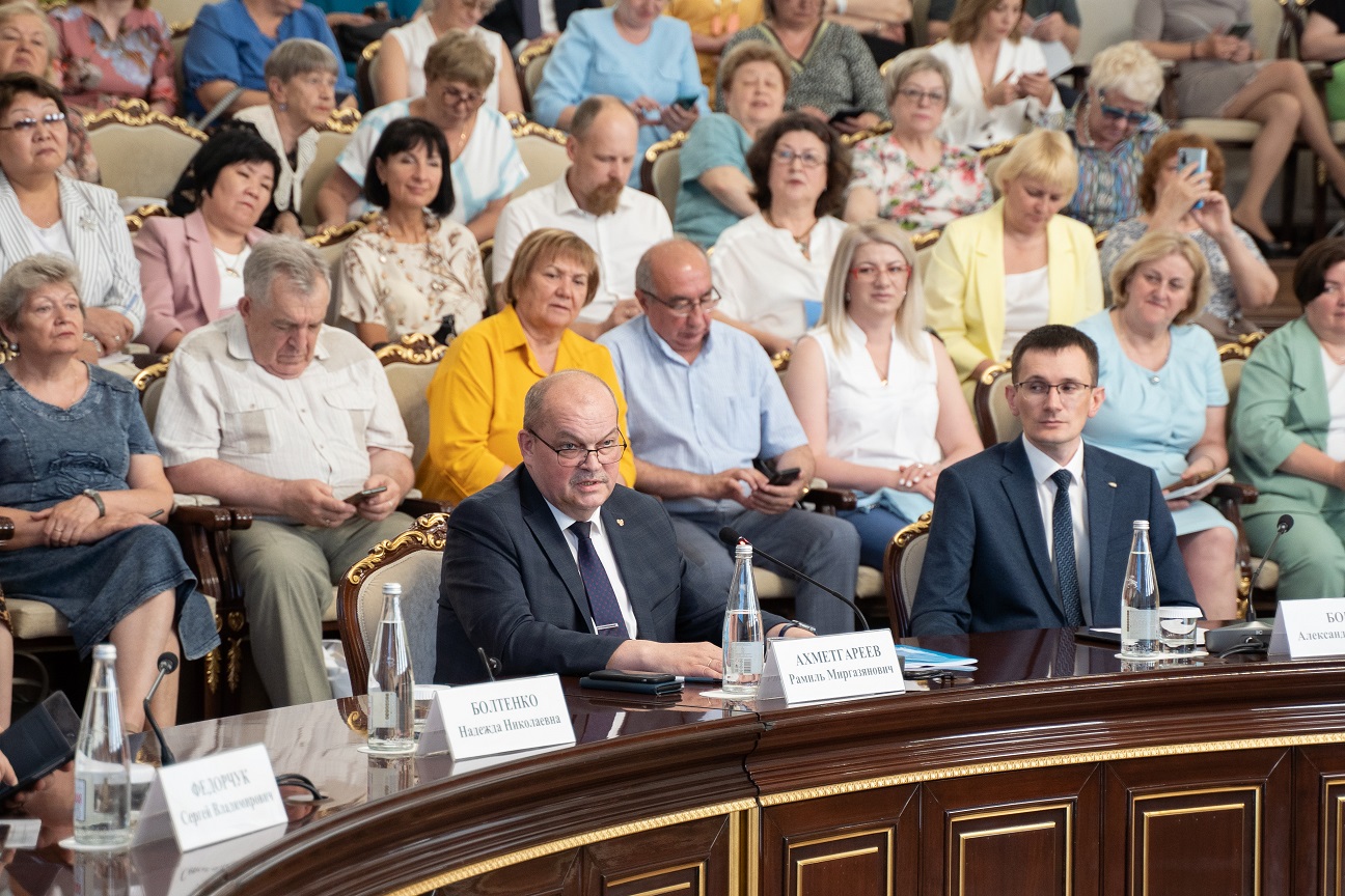 С приветственным словом к участникам заседания обратился Губернатор Новосибирской области Андрей Александрович Травников, который напомнил, что он регулярно проводит встречи с профсоюзным активом системы образования: «На всех этих встречах в последние годы мы говорим о нашей главной задаче – войти в пятёрку лучших региональных систем образования в стране. Из субъективных ощущений от поездок по муниципалитетам, в том числе отдалённым от Новосибирска – радует правильный настрой и высокая мотивация педагогов на местах. Конечно, предпосылкой к этому стало развитие инфраструктуры – Новосибирская область опережающим способом подключает школы к интернету, оснащает соответствующим цифровым оборудованием, в том числе с помощью федеральных и национальных проектов. Но «железо» без людей – бесполезное вложение денег, а люди в нашей системе образования абсолютно правильно настроены. У них горят глаза, они уверены в себе, и некоторые директора сельских школ могут дать фору докторам наук. Жизнь школьников на местах стала насыщенной и интересной – у нас сельские школы ведут проектную деятельность, участвуют в совместных программах с университетами, институтами развития, инновационными организациями не только Новосибирска, но и других образовательных центров, вплоть до Москвы и Сочи. Ученики постоянно участвуют в этих программах, а школы совместно с профсоюзами находят возможность отправлять ребят в сильнейшие лагеря страны».