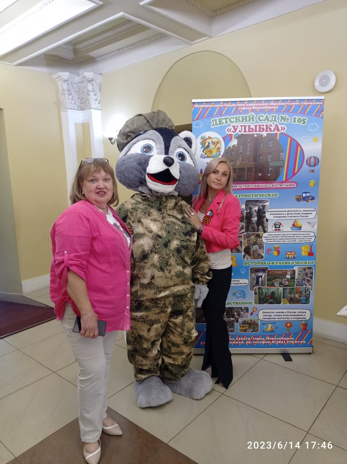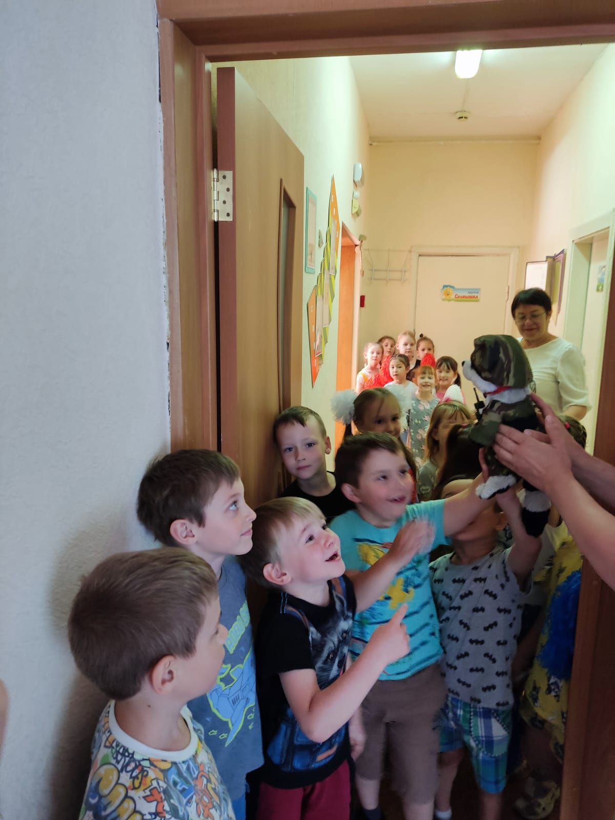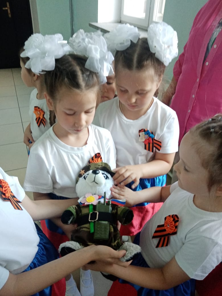 За работу по патриотическому воспитанию с дошколятами нас поблагодарила Савельева Юлия Геннадьевна, член правления женсоюза НСО, председатель Кировского района и вручила нам игрушечного питомца – енота, как сказал Сева Мокин «ещё один экспонат в наш музей».