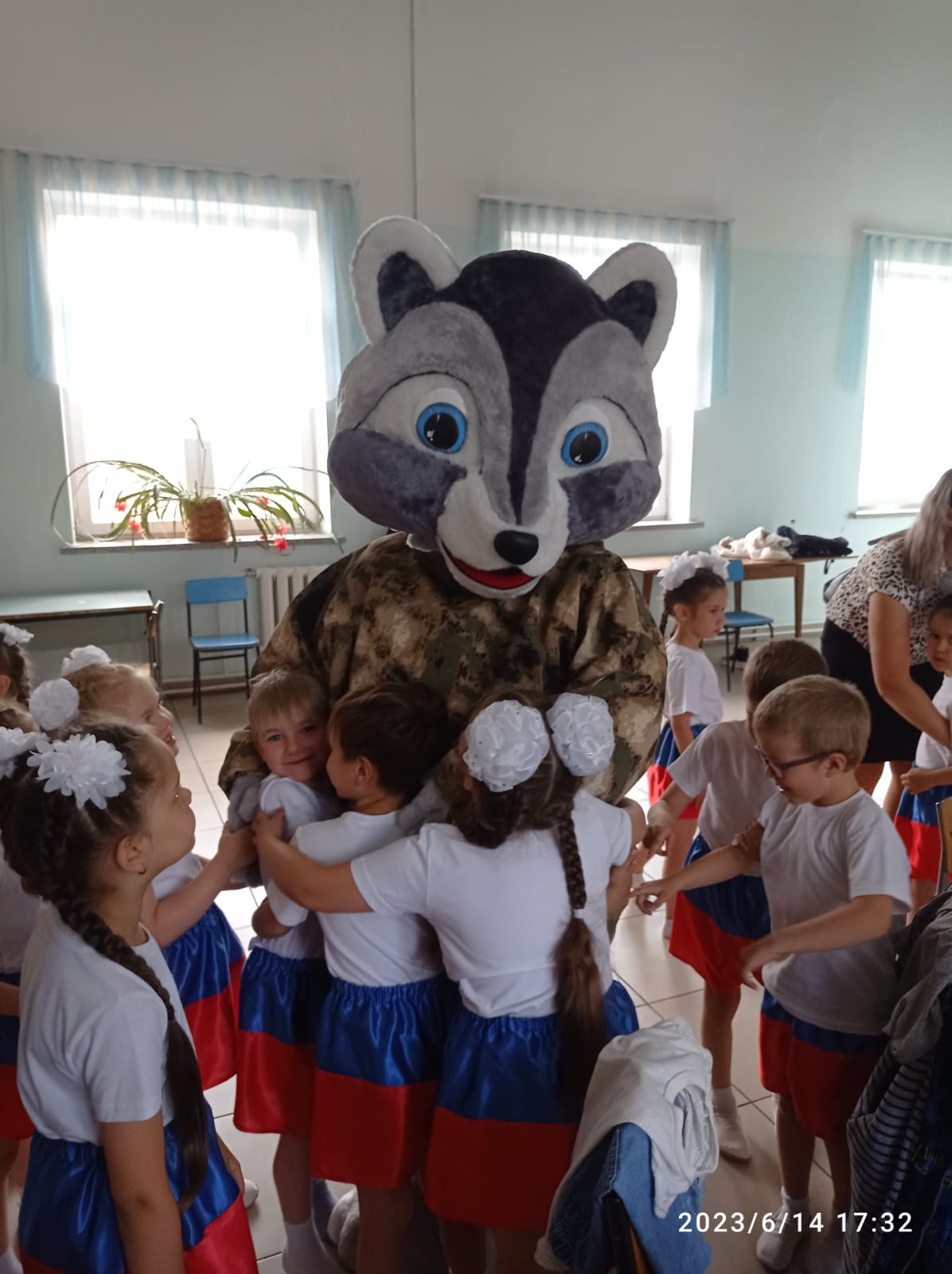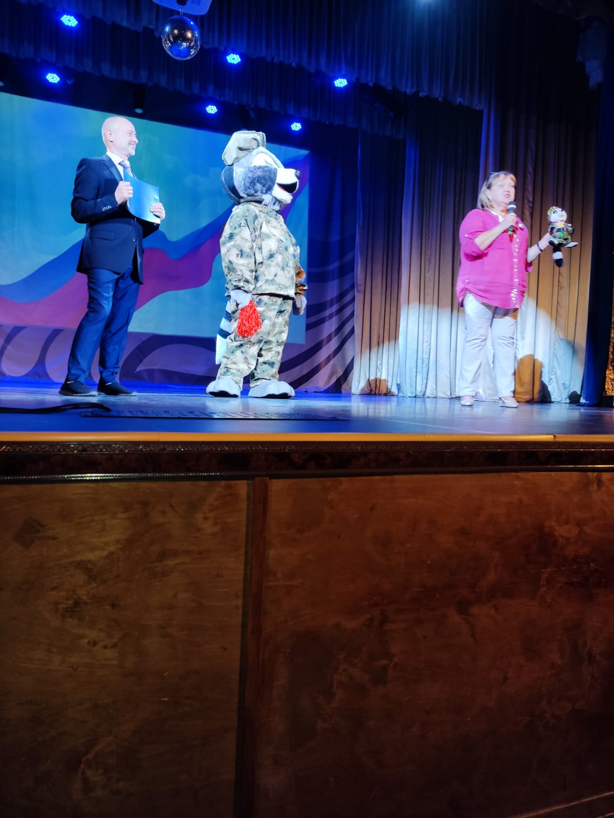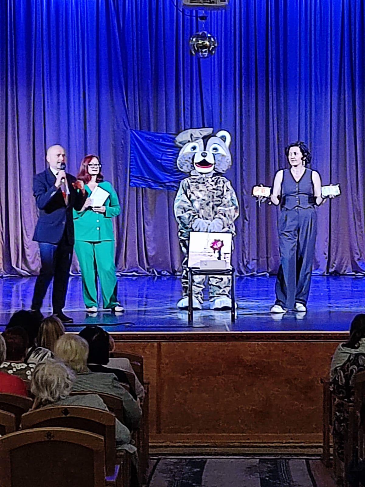 Все присутствующие апплодисментами встречали енота на сцене, особенно после того, как наша заведующая Антонина Владимировна рассказала им, как он появился в нашем детском саду, как полюбили его дети.