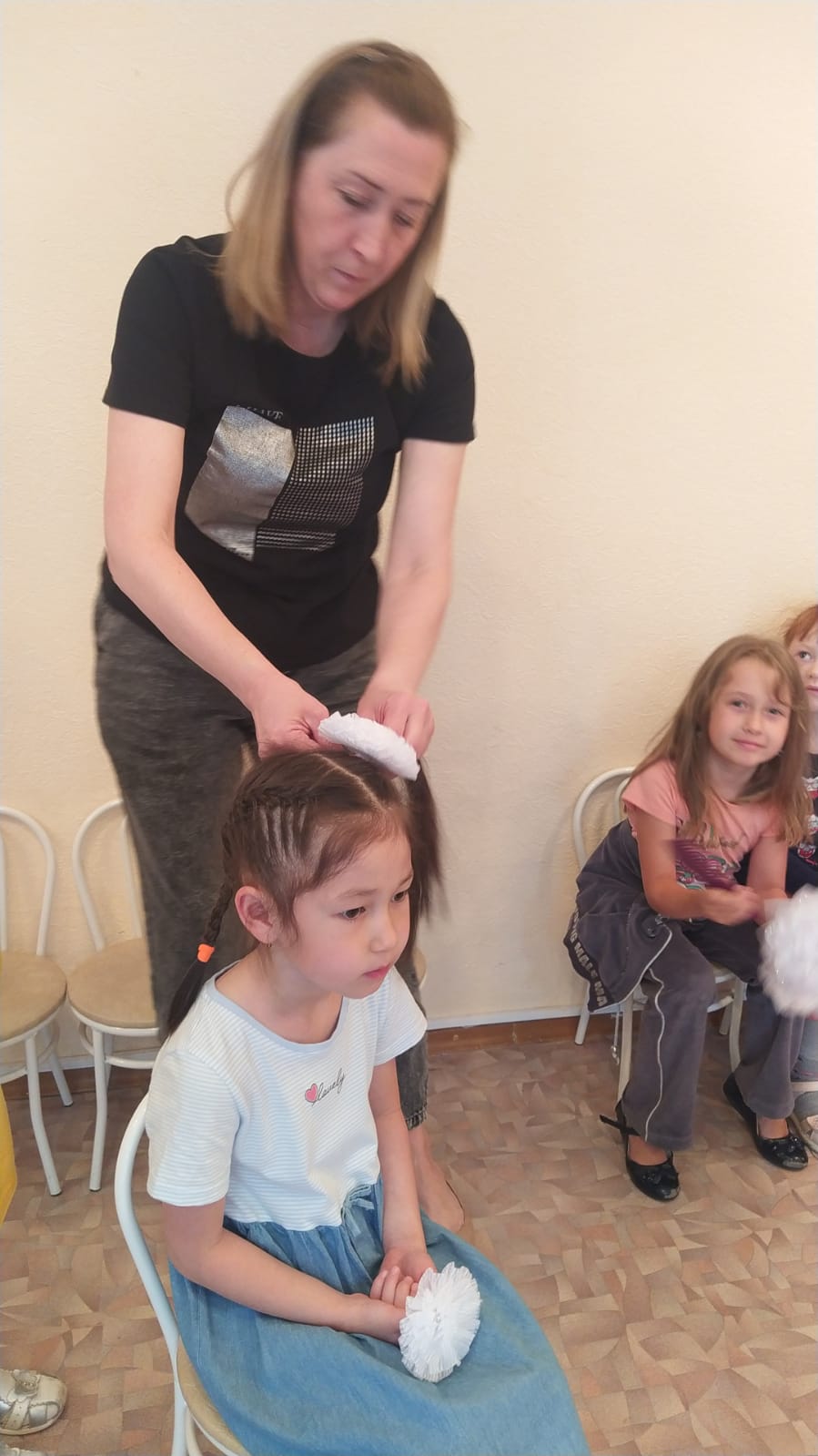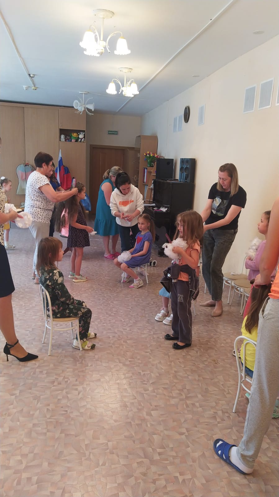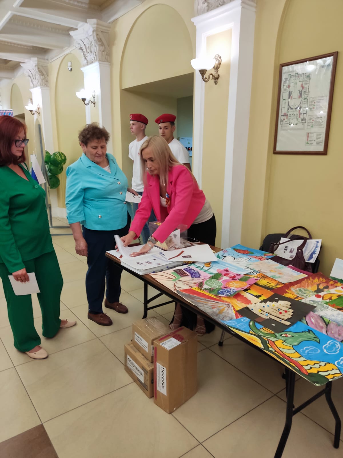 В фойе мы организовали фотозону, где с большим удовольствием фотографировались и взрослые, и дети; читали письма солдат, которые привёз Цветочек из Донбасса, рассматривали фотоальбом. Здесь же гости имели возможность написать письмо воину на бланках с эмблемой нашего Цветочка. Поразило письмо, которое написали ребята – юнармейцы, приехавшие специально из Колывани для помощи в организации праздника (случайно подсмотренное из-за спины писавшего): так трогательно и до слёз проникновенно!