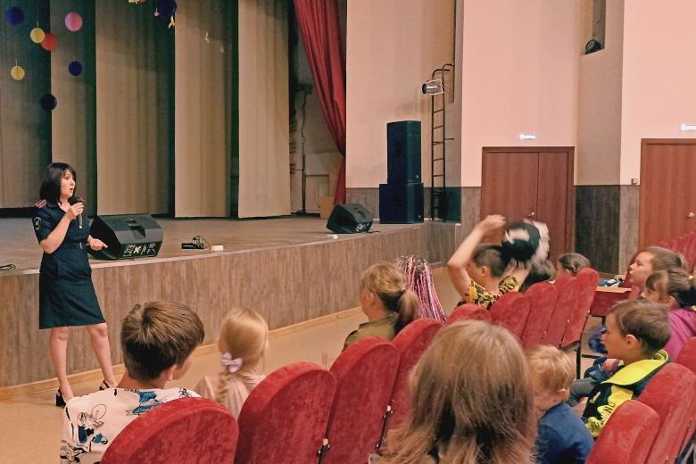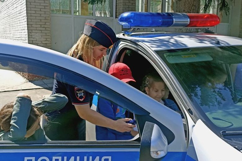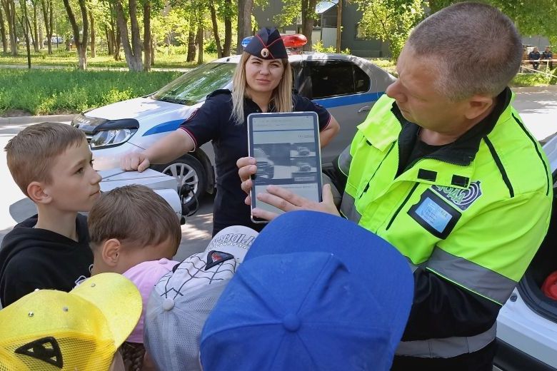 Сотрудники Госавтоинспекции беседовали с детьми о правилах для пешеходов и велосипедистов, рассказывали о своей работе, проводили конкурсы и викторины по ПДД.
