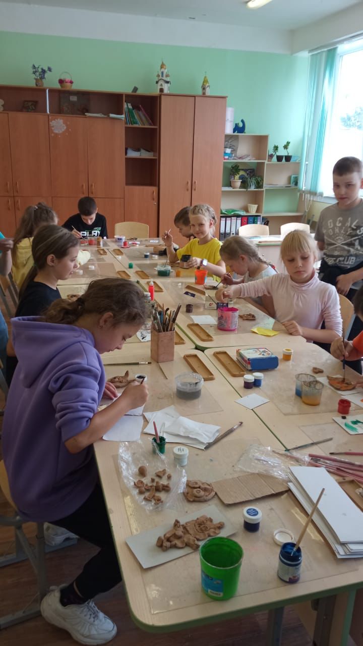 Затем педагоги познакомили ребят с правилами сушки и подготовкой к обжигу. Следующим этапом стала роспись готовых изделий.