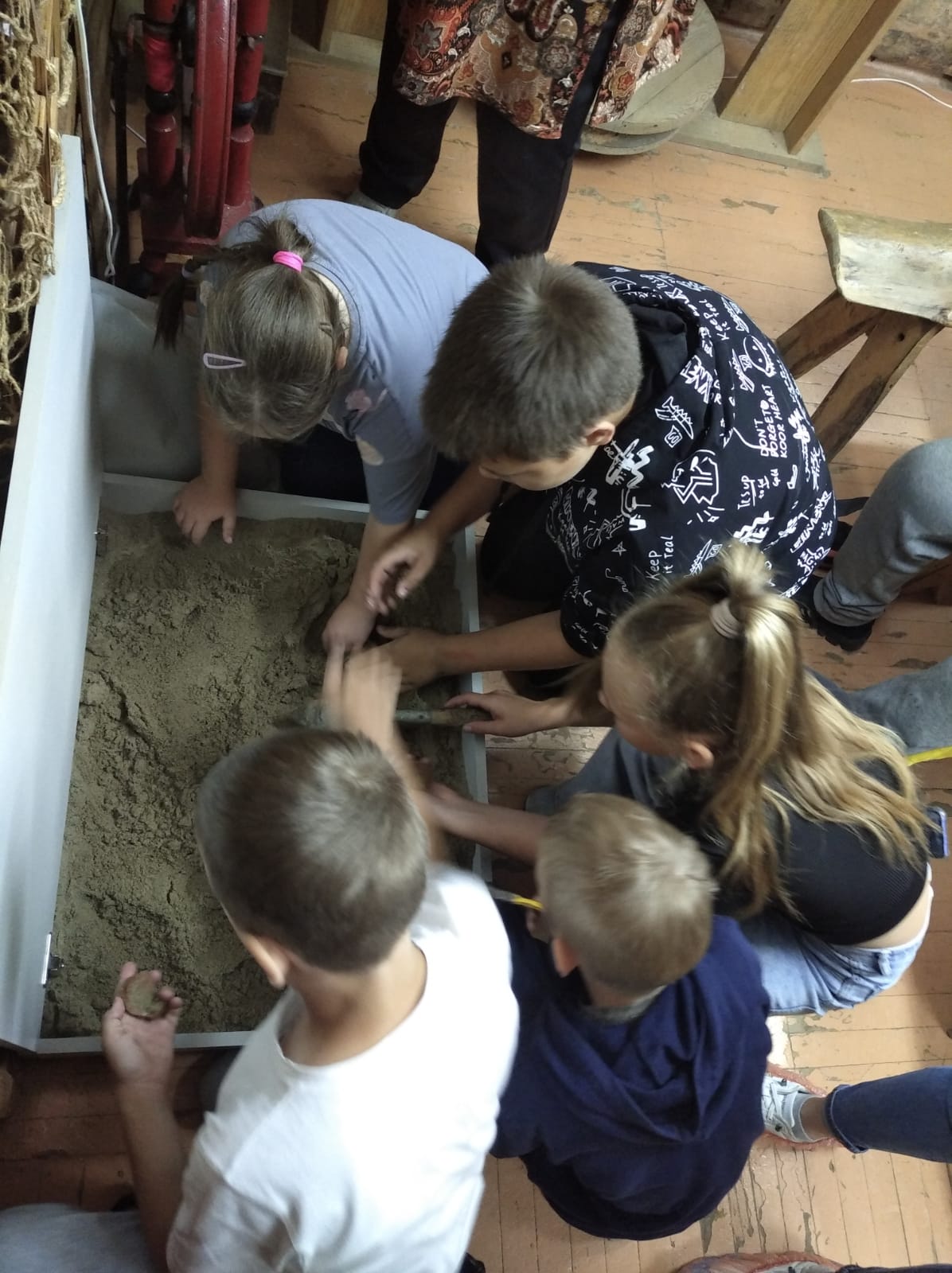 «Музей предков» возглавляет Татьяна Анатольевна Демешко, которая умеет погружать аудиторию в атмосферу старины и традиций. Ребята поучаствовали в раскопках и познакомились с орудиями труда первых поселенцев Сибири, попробовали плетение ткани из крапивы. Участники экскурсии многое узнали о старинных русских играх и забавах, о занятиях, которые помогали поддерживать быт и были жизненно необходимы еще задолго до появления современных технологий.