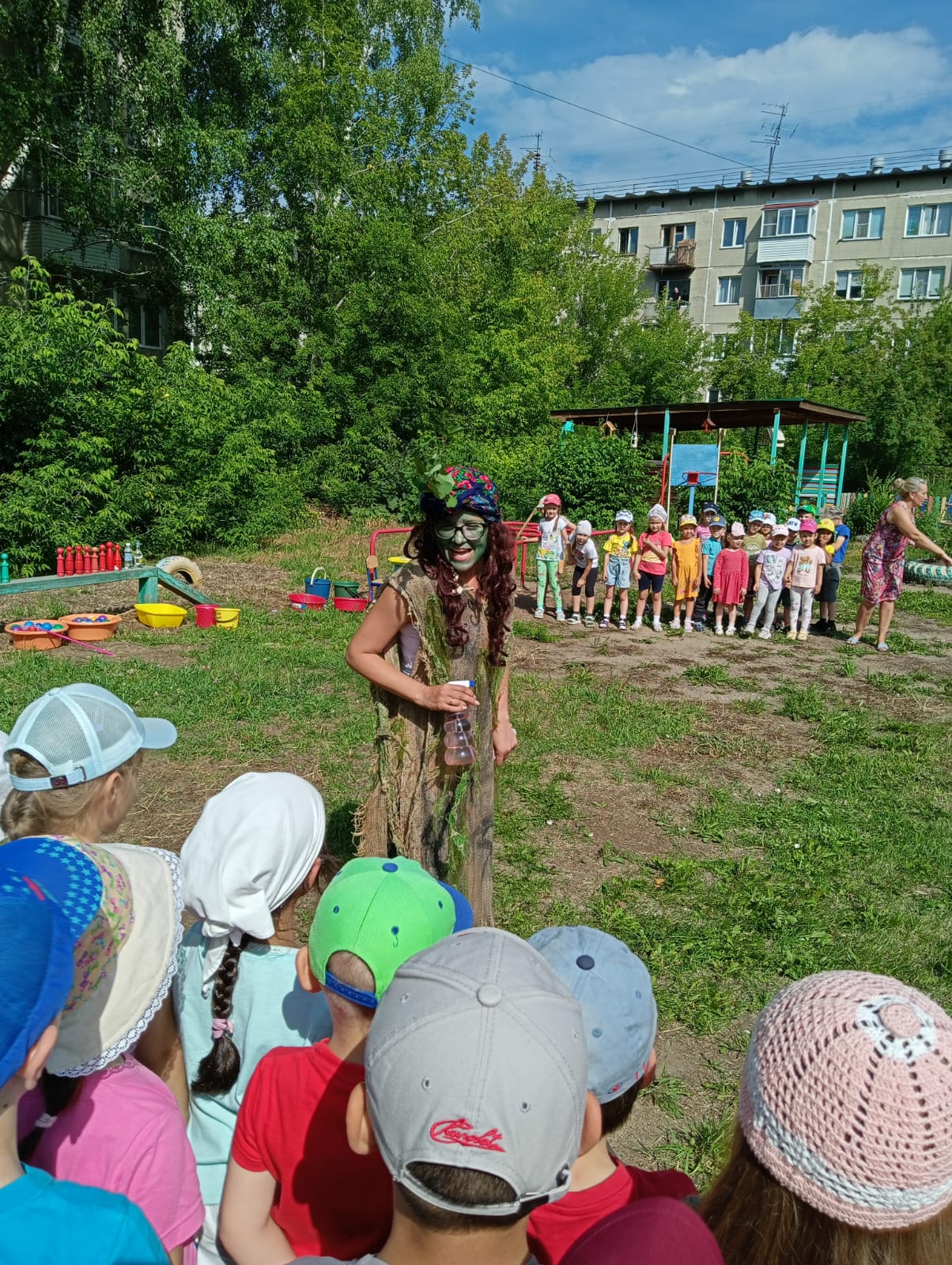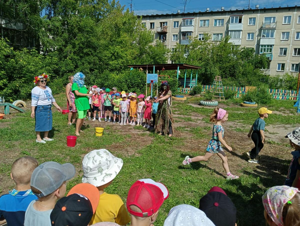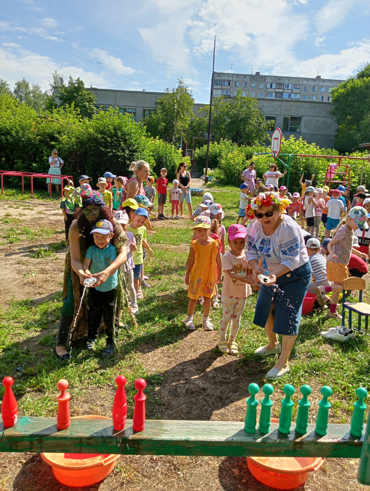 А в конце развлечения Водяной объявил, что сезон купания открыт, окропил водой и пожелал всем крепкого здоровья!