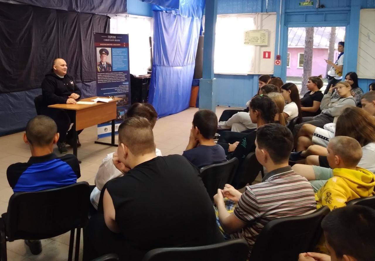О роли и специфике службы в Вооружённых Силах России участникам смены рассказали Владимир Алексеевич Шуев, президент фонда ветеранов спецподразделений «Антитеррор», учредитель НРОД «Защитник», участник СВО; Александр Викторович Секачев, руководитель музея боевой славы НОО «Российский союз ветеранов Афганистана»; Александр Михайлович Вальтеев, полковник, командир ОМОН г. Прокопьевска; Анатолий Александрович Рожков, подполковник ОМОН г. Новосибирска; Александр Степанович Ткаленко, руководитель ВООВ «Боевое братство». Ребята смогли задать почётным гостям вопросы о военной службе и специальной военной операции. В рамках фотосессии ребята с огромным удовольствием сфотографировались с гостями смены.