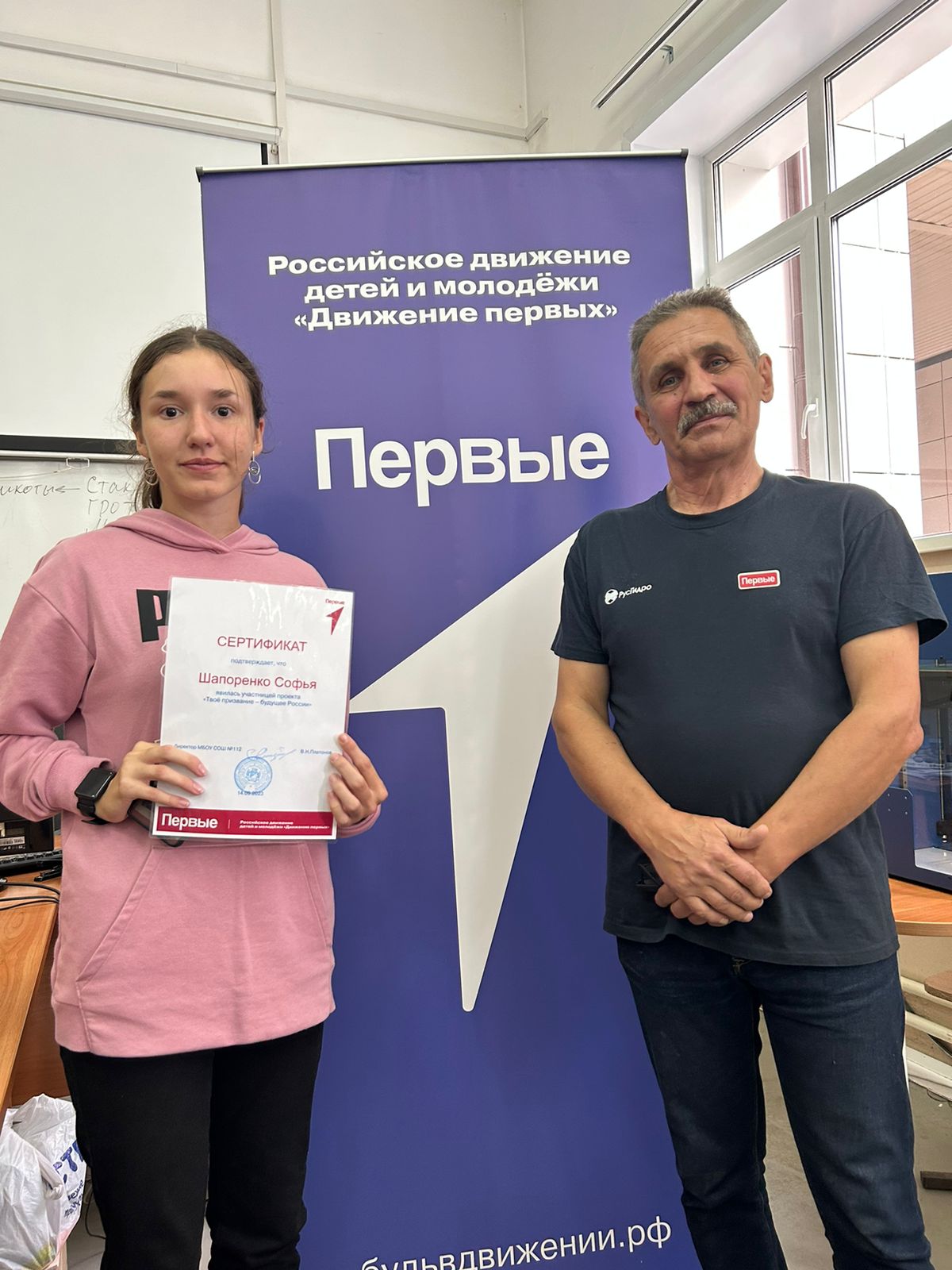 Все участники РЭШ получили сертификаты российского движения детей и молодёжи «Движение первых», объединяющего школьников в своём профессиональном самоопределении и причастных к реализации проекта «Твоё призвание – будущее России» в МБОУ СОШ № 112.
