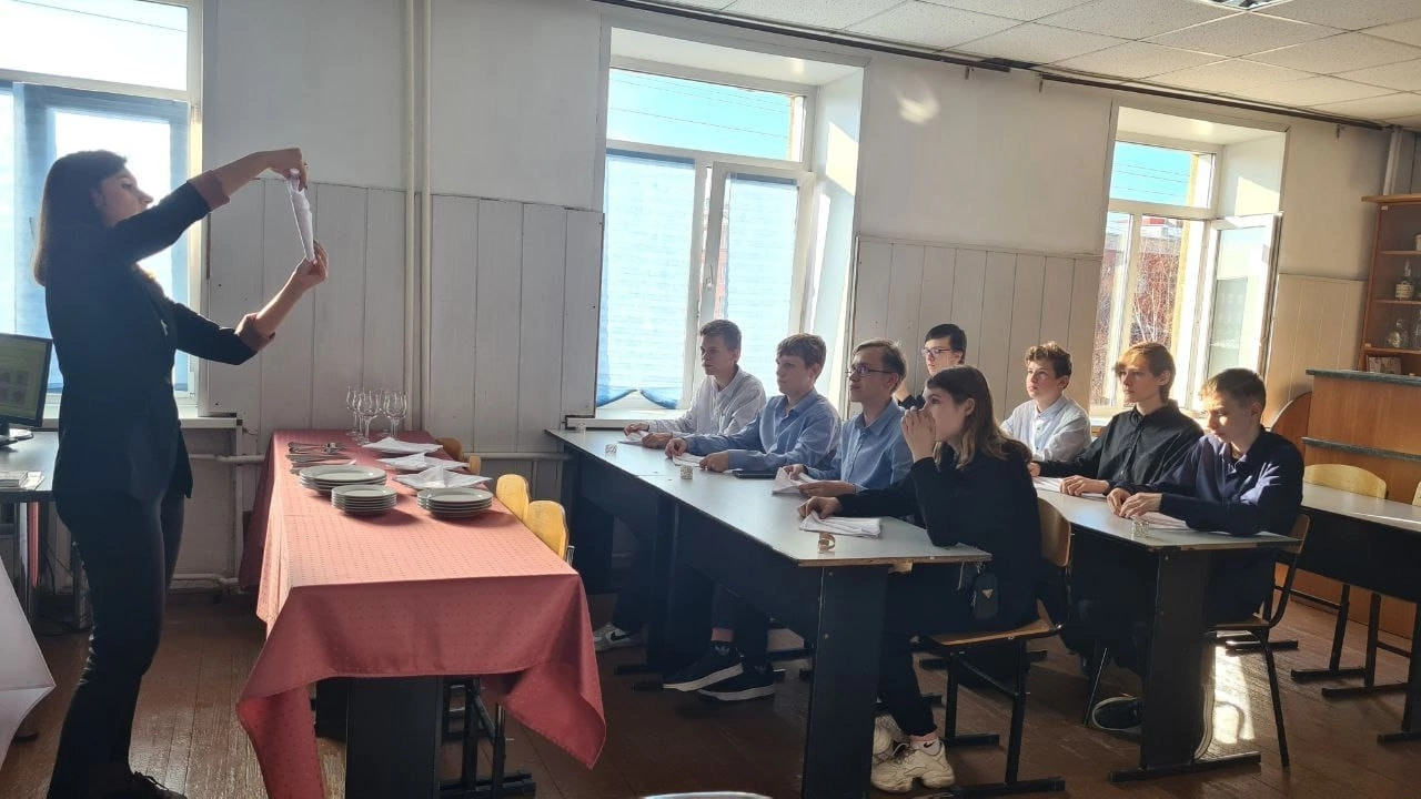 Ученики 7 «А» класса самостоятельно выпекали ароматные булочки, а обучающиеся 9 «В» познакомились с сервировкой праздничного стола и прошли мастер-класс «1000 и 1 способ складывания салфеток».