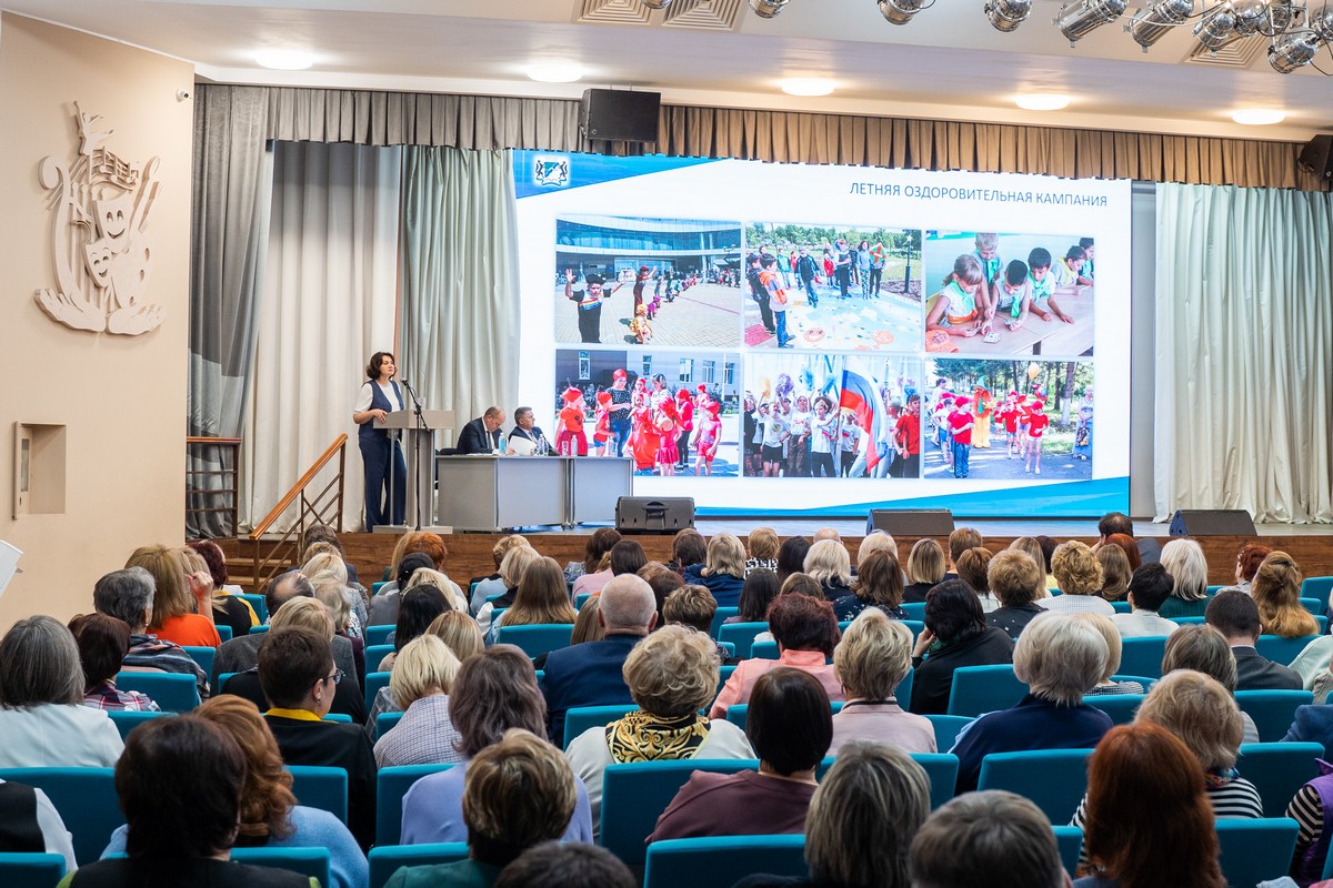 Заместитель начальника департамента образования мэрии города Новосибирска Елена Юрьевна Кащенко проинформировала участников совещания об итогах летней оздоровительной кампании 2023 года и подготовке к летней оздоровительной кампании 2024 года, а также о некоторых результатах социально-психологического тестирования обучающихся. Обратила внимание руководителей на качественное ведение ГИС НСО «Электронная школа», ФГИС «Моя школа», официальных сайтов и социальных сетей образовательных организаций, актуализацию данных в ГИС «Навигатор дополнительного образования детей Новосибирской области».