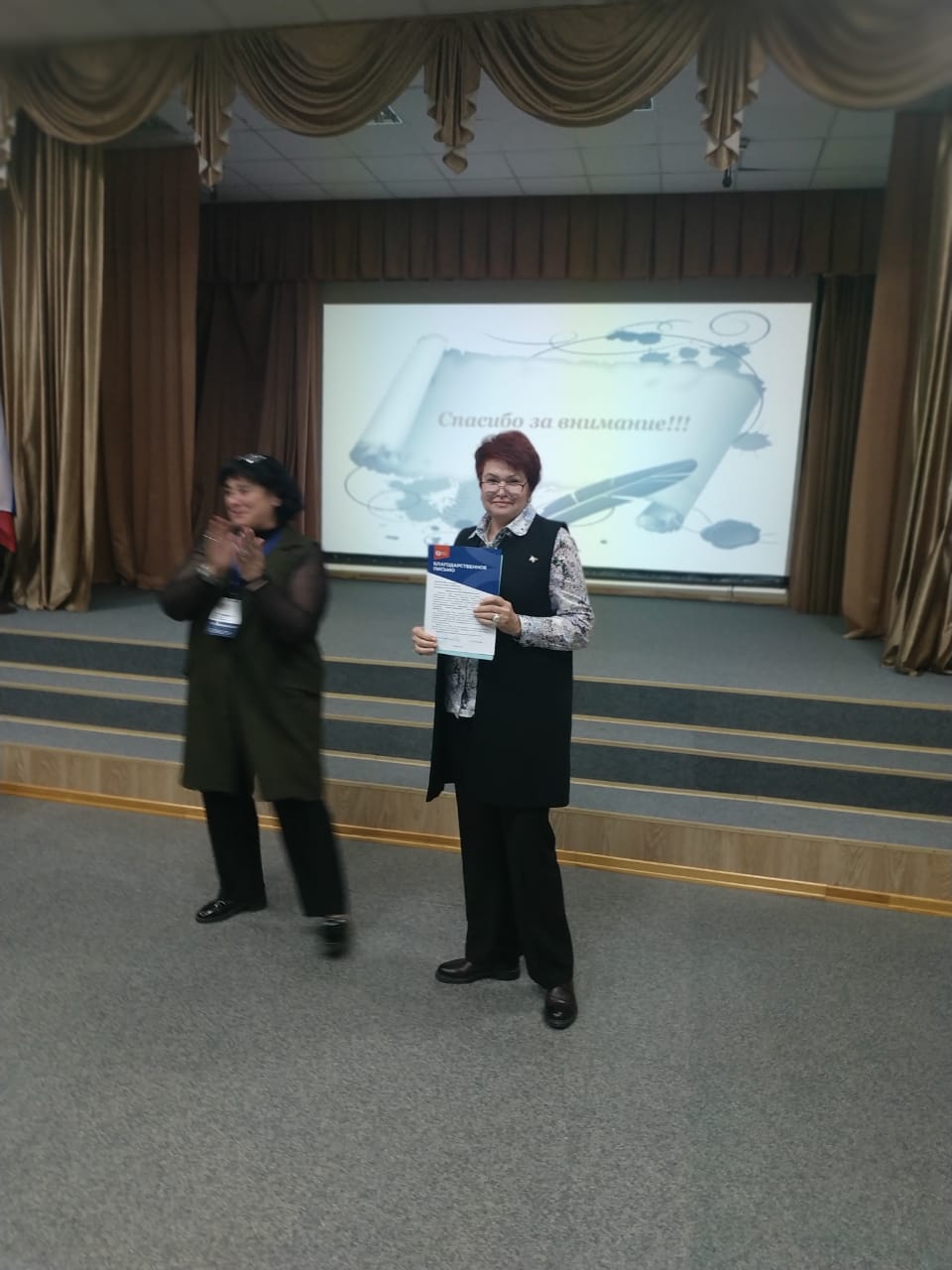 Выступление Чуб Е. В. на пленарной части методического ПРОактива «Мастерская современного учителя» было отмечено Благодарственным письмом МАУ ДПО «НИСО», а представленный педагогический опыт Рогачевой С. М – Сертификатом за активное участие в проведения мастер-класса «Технология шестиугольного (шестигранного) обучения как средство достижения новых образовательных результатов».