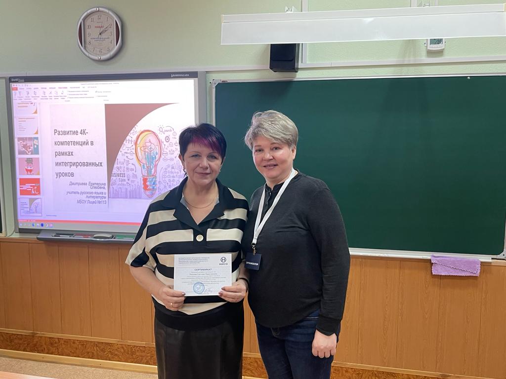 На пленарном заседании одним из участников стала методист МБОУ СОШ № 56 Чуб Е. В., кандидат педагогических наук, доцент. Она представила слушателям доклад на тему: «Технологии внутриорганизационного повышения квалификации как предиктор профессионального роста педагогических работников», в котором рассказала об особенностях организации процесса управления профессионально-личностным развитием педагогов и реализации Модели внутриорганизационного повышения квалификации педагогов школы.