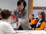Целью конкурсного испытания «Разговор со школьниками» являлась демонстрация конкурсантом профессионально-личностных компетенций в области воспитания и социализации школьников. Участники конкурса провели с учащимися разных классов открытое обсуждение актуальной социально значимой темы. Темы для обсуждения были разработаны Оргкомитетом в соответствии с Основами государственной политики по сохранению и укреплению традиционных российских духовно-нравственных ценностей (утверждены Указом Президента Российской Федерации 9 ноября 2022 г. № 809) и определялись для каждого конкурсанта онлайн-жеребьевкой. Участники продемонстрировали свои способности в рамках ведения конструктивного диалога, коммуникативную культуру и знание возрастной психологии детей.