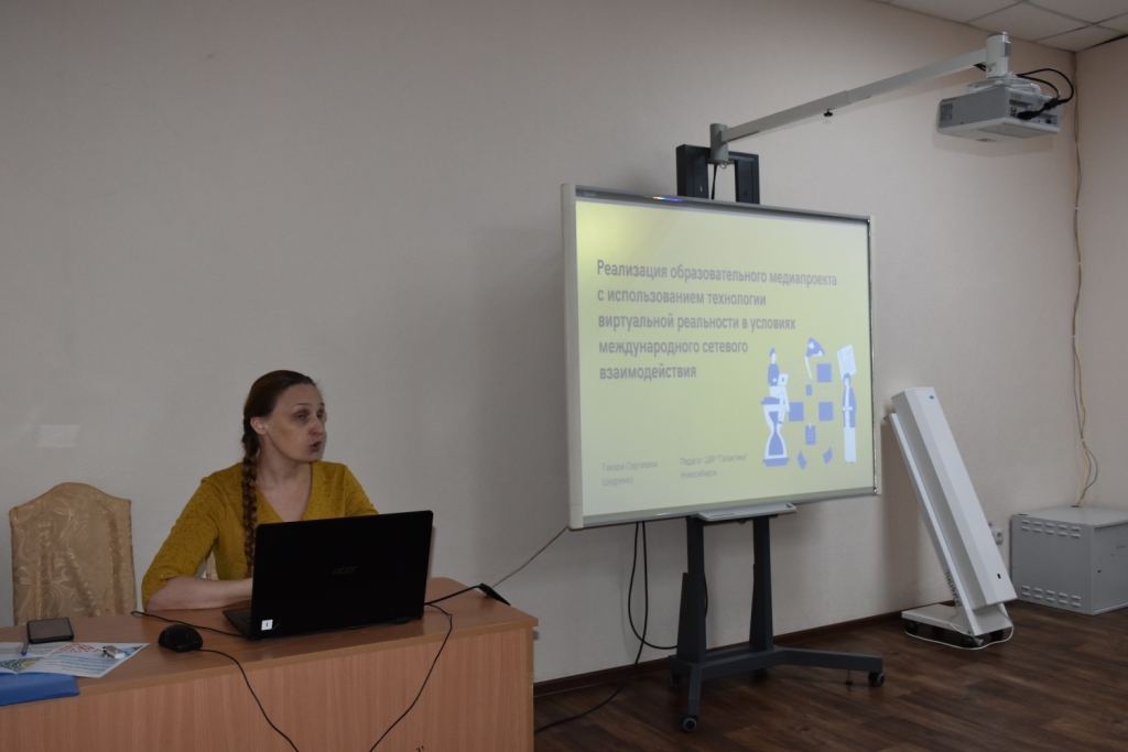 Заместитель директора по УВР Першикова А. А. сделала акцент на формах взаимодействия коллектива ЦВР «Галактика» в сфере сотрудничества с другими странами, рассказала об интересных направлениях работы педагогического коллектива Дворца «Золак», тематике совместных вебинаров, телемостов, диалоговых площадок.