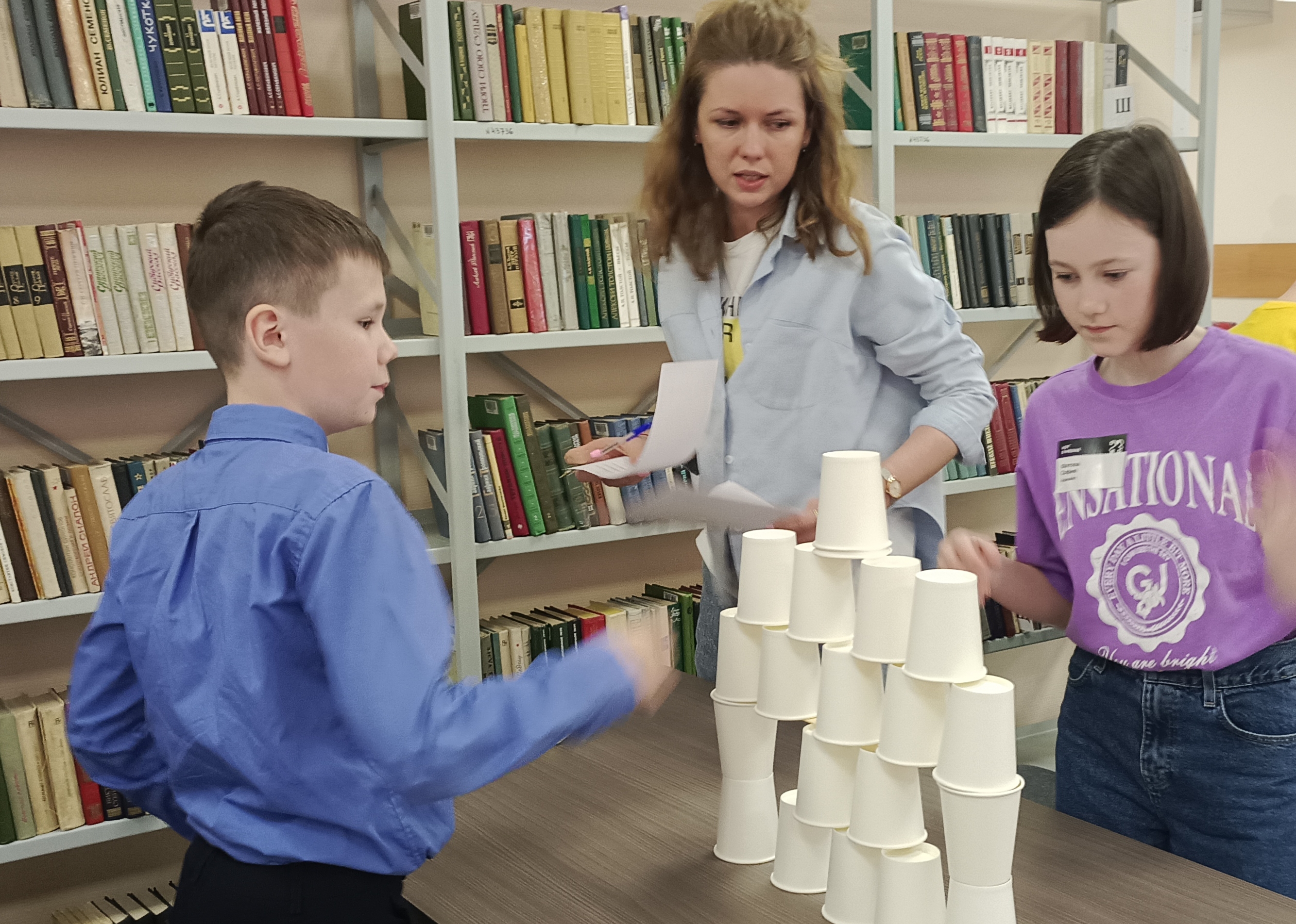 Соревновательный день «Кот в мешке» проводился 6 декабря в библиотеке НГТУ. Состязания проходили в 3 этапа. Первым заданием стало решение головоломки с тремя уровнями сложности. От скорости и правильности выполнения зависел результат. Выполнять второе задание участникам помогали наставники команд соперников. Ребятам предстояло построить башни из бумажных стаканчиков. Сложность состояла в том, что на запоминание образца давалось всего 30 секунд и на построение – 3 минуты. Это задание тоже было с тремя уровнями сложности. Третьим заданием стало строительство моста из бумаги и деревянных шпажек. Мост команды «Аджайл» выдержал нагрузку массой 770 грамм. Команда «Скрипт» использовала немного иную конструкцию, что позволило мосту выдержать нагрузку 1221 грамм.