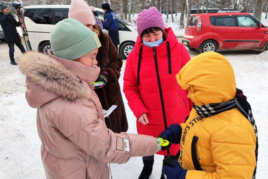 Полицейский Дед Мороз поздравил водителей и пешеходов с наступающими праздниками и пожелал безопасности на дорогах, а школьники вручили тематические листовки и световозвращающие элементы.