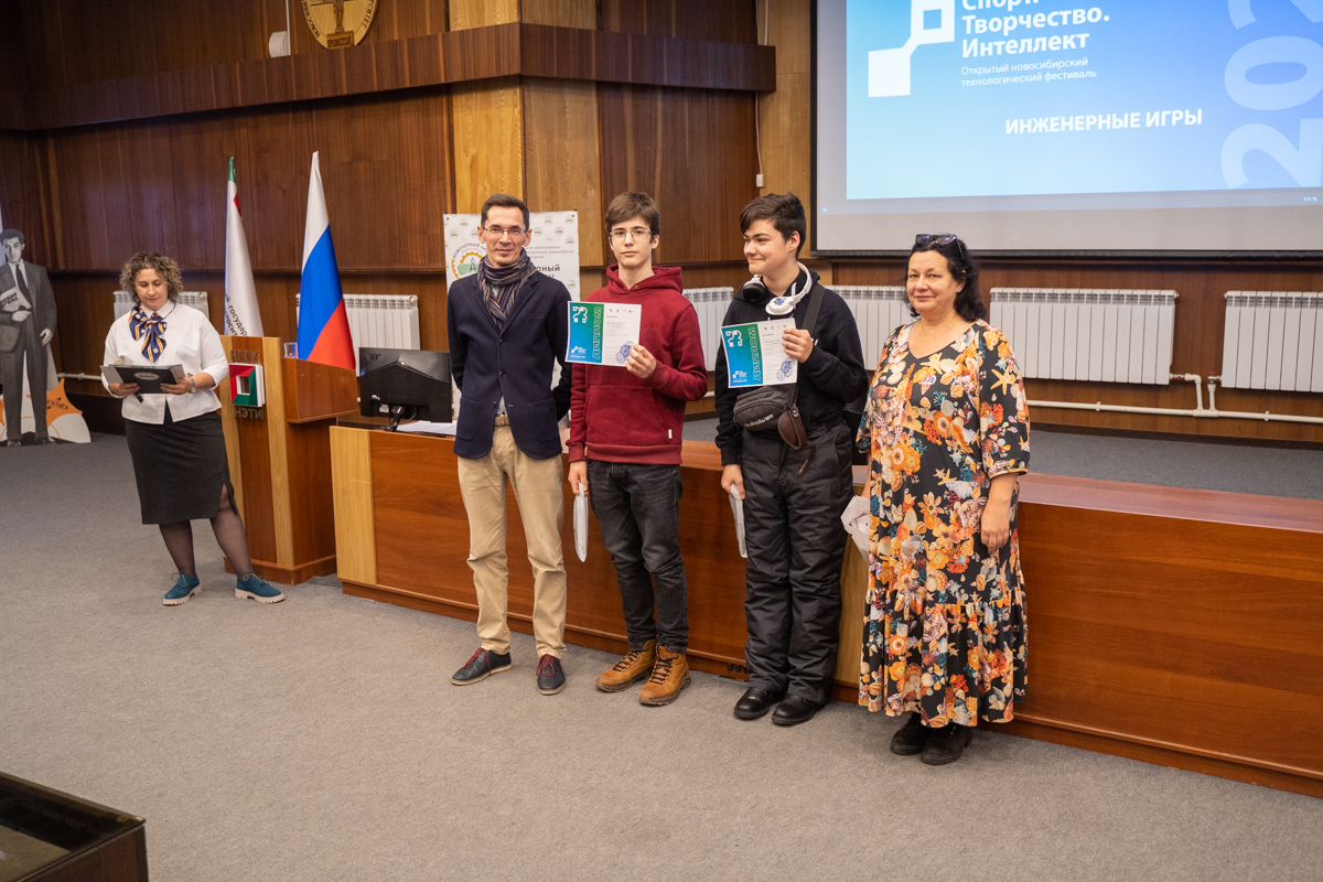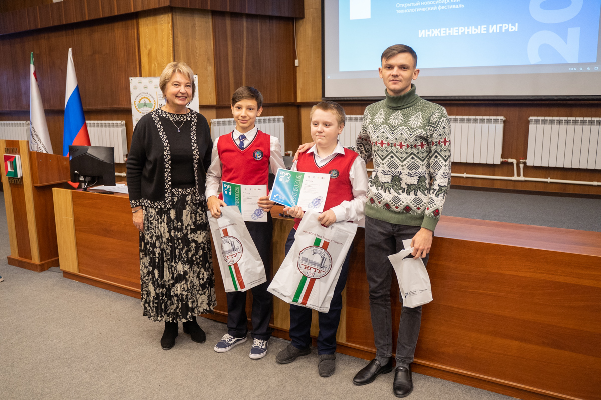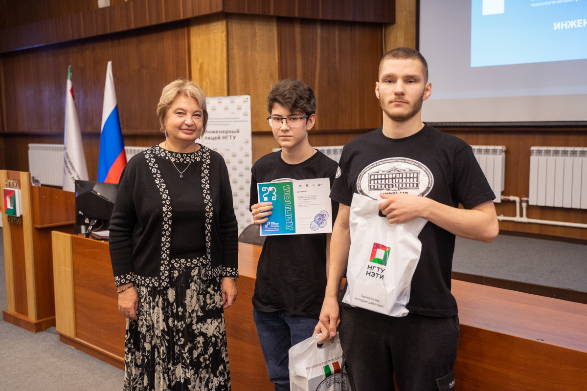19 декабря в конференц-зале НГТУ состоялось торжественное награждение по итогам фестиваля. Поздравили и вручили победителям награды проректор по учебной работе Новосибирского государственного технического университета НЭТИ Сергей Сергеевич Чернов, директор Инженерного лицея НГТУ Маргарита Александровна Безлепкина и заместитель директора МАУ ДПО «НИСО» Ильмира Рамильевна Гудова.