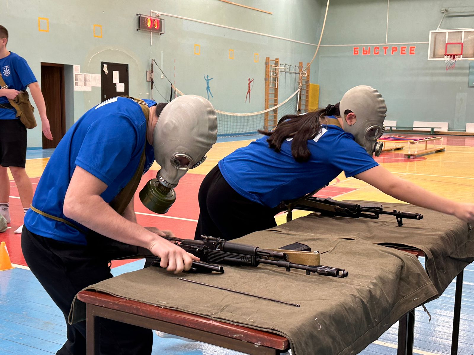 Команды соревновались в знании вопросов по тематике основных событий Великой Отечественной войны 1941–1945 годов, в беге в противогазах, неполной разборке и сборке АКМ в противогазах, надевании общевойскового защитного костюма, переползании «по-пластунски» в противогазе, стрельбе из лазерного пистолета, снаряжении магазина АКМ 30 патронами, переноске пострадавшего в противогазах.