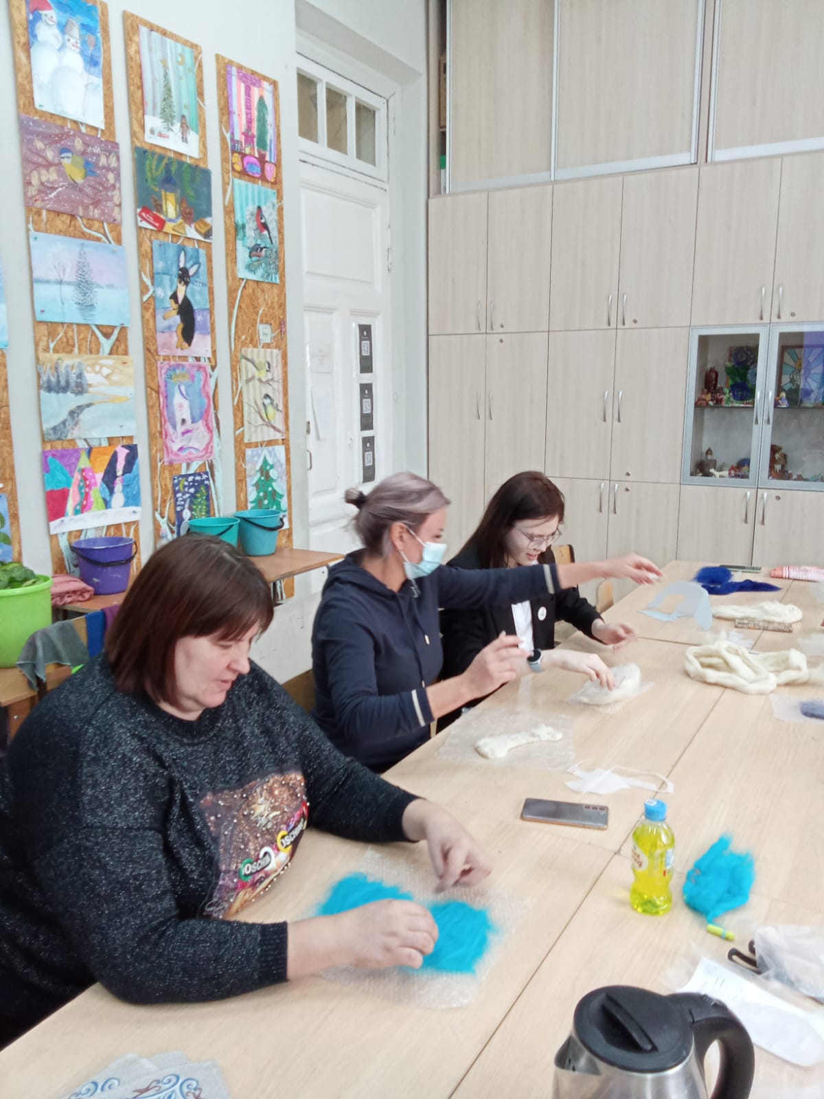 В Центре дополнительного образования «Алые паруса» руководитель творческого объединения «Поваляка» Ильченко Наталья Сергеевна провела для родителей учеников мастер-класс по созданию новогоднего сувенира. Мастер-класс прошел 13 января и был посвящен изготовлению валенок. Участники узнали о том, какие материалы используются для создания валенка, как их сочетать между собой и как передавать через творчество свои эмоции и чувства. Также они научились работать с шерстью и узнали о разных способах валяния, что позволило каждому участнику создать уникальные валенки по своему вкусу. Особое внимание было уделено декору изделия. Участники мастер-класса украсили свои валенки с помощью различных материалов и техник, чтобы они стали не только символом праздника, но и отражением индивидуальности своего создателя.