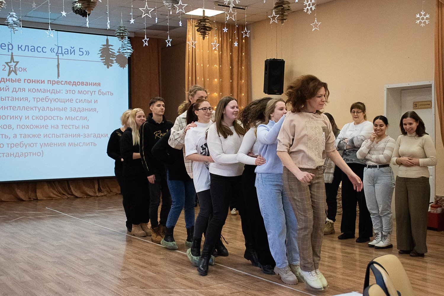 В МБУДО ЦВР «Галактика» 24 января состоялся городской мастер-класс «Дай 5» для педагогов и студентов-практикантов дополнительного образования. А. Н. Балакина, педагог-организатор Центра внешкольной работы «Галактика», поделилась с коллегами своим опытом работы с детьми разных возрастных категорий, рассказала и на примере показала различные игры и задания на развитие командного сотрудничества и сплочение группы, а также на улучшение коммуникации среди подростков, объединённых творческими интересами. В мероприятии приняло участие 27 человек.