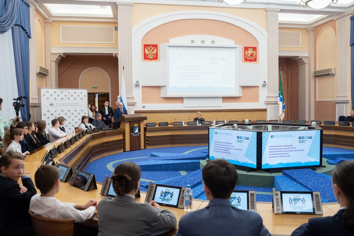 25 января в большом зале мэрии города Новосибирска состоялось подведение итогов и торжественная церемония награждения победителей муниципального этапа Всероссийской олимпиады школьников.