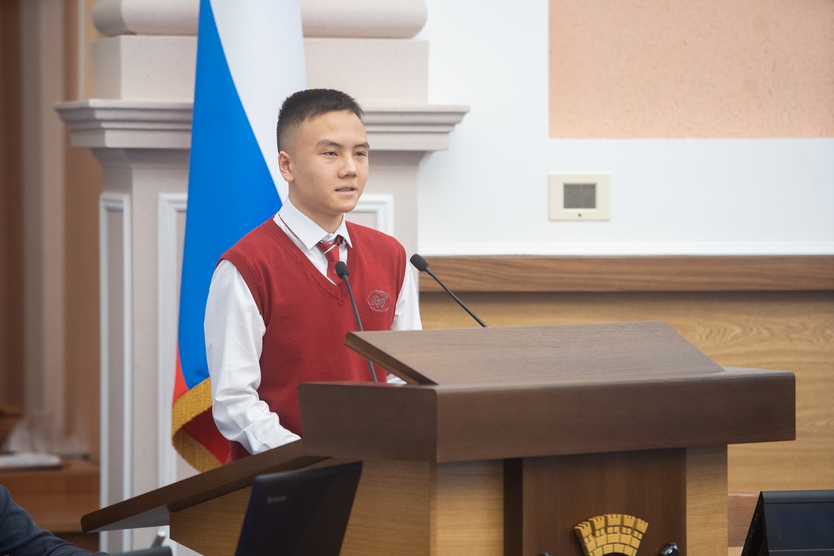 От имени всех победителей и призеров олимпиады к участникам мероприятия обратился Кирилл Кильбер, ученик 11-го класса МАОУ Вторая гимназия, победитель Всероссийской олимпиады школьников по биологии 2023 года, призер муниципального этапа по географии, английскому языку, биологии и химии. Он отметил, что участие в олимпиаде открывает большие возможности, а главная из них – это приобретение новых друзей. Слова благодарности были сказаны в адрес учителей, которые разделяют с воспитанниками тревоги, ожидания, горечь поражений и, конечно, радость побед. В завершении своего обращения Кирилл пожелал присутствующим новых достижений в этом году.