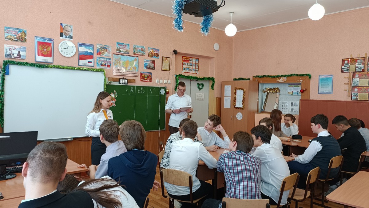 В преддверии праздника Е. В. Литвиненко, советник директора по воспитанию, и Э. В. Боровков, учитель истории, для обучающихся 8-9 классов провели интеллектуальную игру «Студенческая пора».