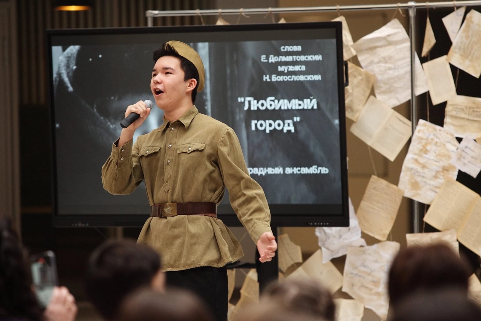 На протяжении всего представления участники литературно-музыкальной композиции вели откровенный диалог со зрителем, пытаясь достучаться до каждого сердца. Тема памяти, войны, чести и героизма красной нитью прошла через весь праздничный концерт. В песнях военных лет, в пронзительных строчках о любимом городе юные артисты и их учителя воспевали великий подвиг наших дедов и прадедов, пробуждая в душе зрителей искренние чувства и эмоции. С первых аккордов финальной песни «Встанем» зал в едином порыве поднялся, отдавая дань подвигу наших предков, многие зрители не смогли сдержать своих слёз.