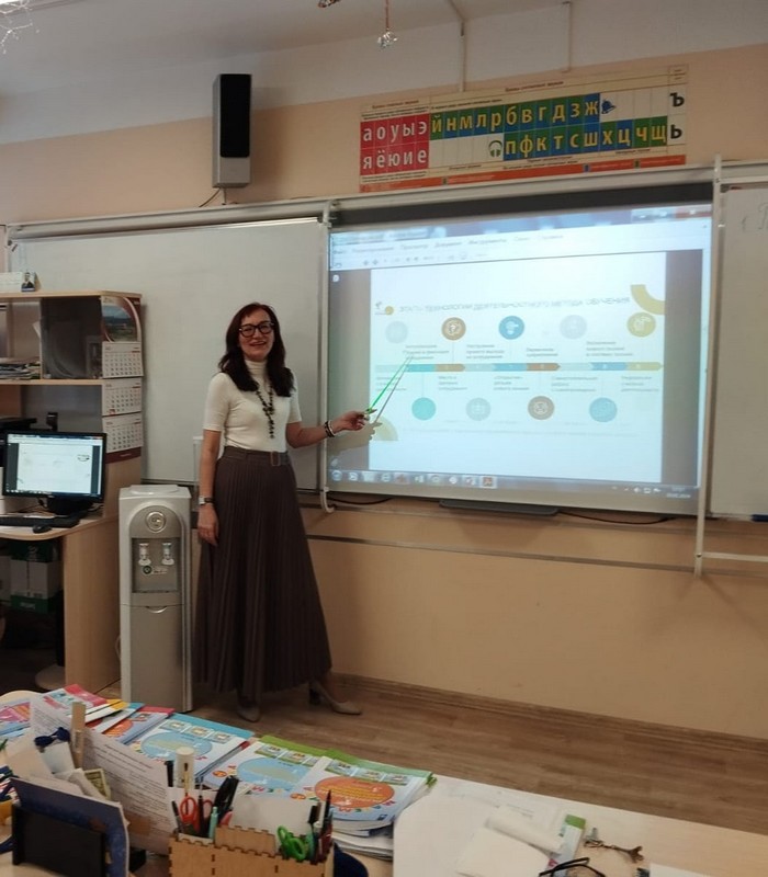 Взаимодействие с Институтом системно-деятельностной педагогики представила Татьяна Михайловна Орлова, руководитель ММО учителей начальных классов. Ей удалось показать, какие возможности существуют у учителей всей страны при сотрудничестве с данным учреждением. Коллеги могут участвовать в ежегодных международных и всероссийских мероприятиях, повышать квалификацию на курсах и марафонах, выступать на конференциях, форумах и межрегиональных семинарах, получать методическую поддержку, скачивать готовые разработки на сайте.