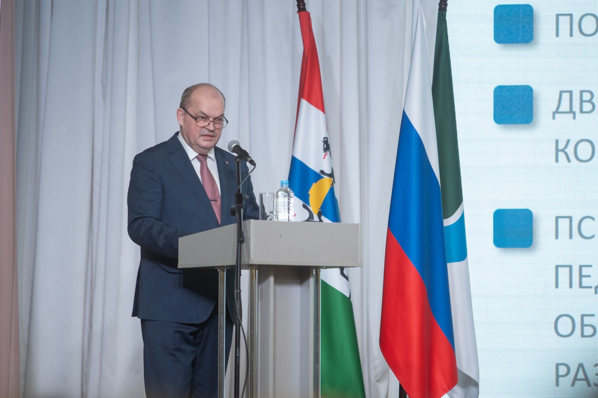 С приветственным словом к участникам собрания обратился Губернатор Новосибирской области Андрей Александрович Травников. Он отметил большую работу педагогического сообщества по реализации государственных и областных программ в сфере образования. Сегодня перед отраслью стоит задача по повышению качества образования, что позволит Новосибирской области войти в пятерку лучших в Российской Федерации. Также Андрей Александрович обозначил направления, которые требуют пристального внимания: профориентация, техобразование, сопровождение одаренных и талантливых детей, патриотическое воспитание.