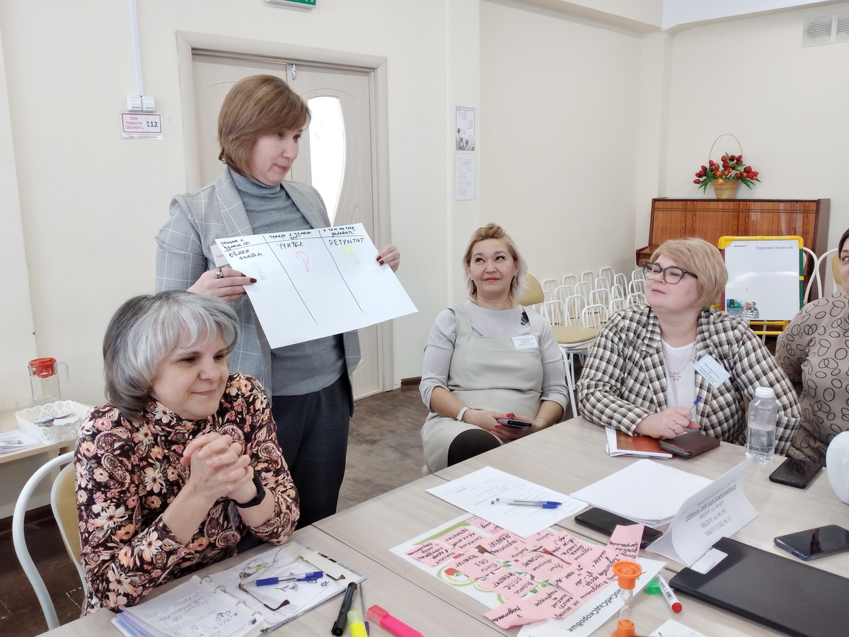 Во второй части установочного семинара участники, разделившись на четыре подгруппы, скорректировали совместные планы-графики деятельности стажировочных площадок, обсудили чек-листы, разработанные для проведения мониторинга результативности работы. В конце семинара была проведена рефлексия, в ходе которой педагоги рассказали о своих ожиданиях на старте проекта, об изменениях, которые произошли после установочного семинара и о перспективах участия в проекте.