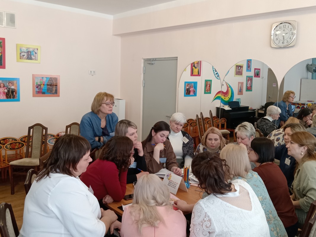 Мероприятие началось со знакомства: после обсуждения групповых правил и объединяющей игры участники семинара представили портрет каждой ДОО в формате «Печа-куча».