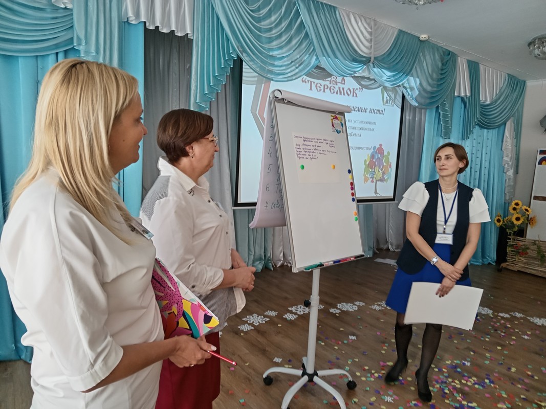 В ходе семинара творческие группы педагогов скорректировали совместные планы-графики деятельности стажировочных площадок и ДОО-стажеров. Оберемок Светлана Михайловна обсудила с участниками формат заполнения чек-листов, разработанных для проведения мониторинга результативности работы.