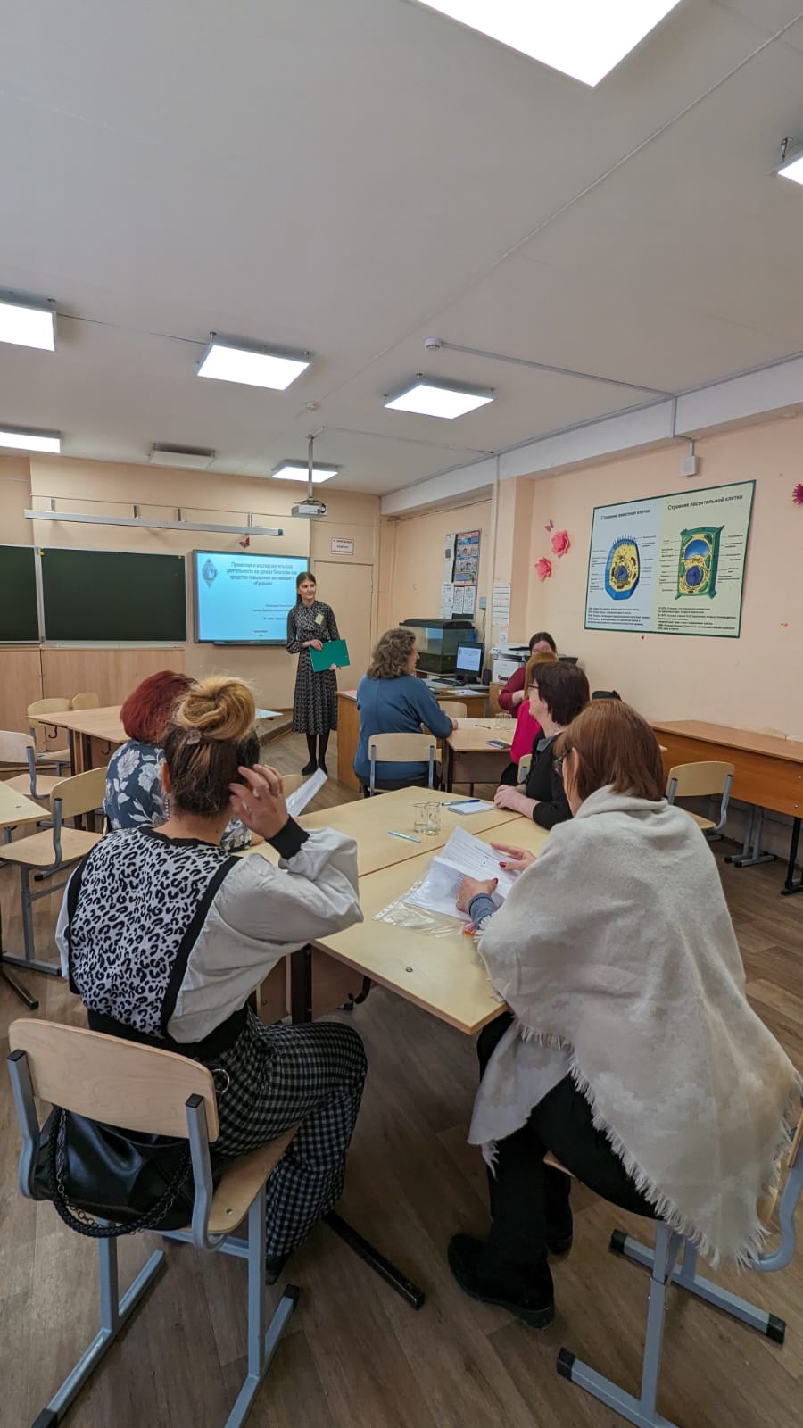 Педагоги гимназии дали серию мастер-классов для своих коллег. Они поделились своим опытом и знаниями в различных предметных областях, в частности показали применение мнемотехники на уроках математики в старших классах при изучении раздела «Тригонометрия», использование ресурсов образовательной платформы «ЯКласс» при обучении физике, показали как развить в учениках навыки и компетенции XXI века на уроках биологии, организовать «логические пятиминутки» с целью формирования математической грамотности обучающихся начальных классов.