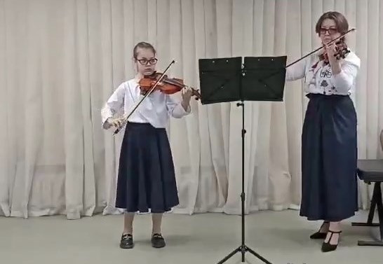 Инструментальная пьеса «Музыкальный алфавит» в исполнении двух скрипок прозвучала как сравнение с алфавитом, где каждая буква и звук, как семейные ценности, которые являются фундаментом семьи, где есть свой порядок. Затем прозвучали два произведения, как «душевный свет семьи»: академическое исполнение «Колыбельной» и инструментальное «Тихо, как при восходе солнца» – в фортепианном ансамбле.